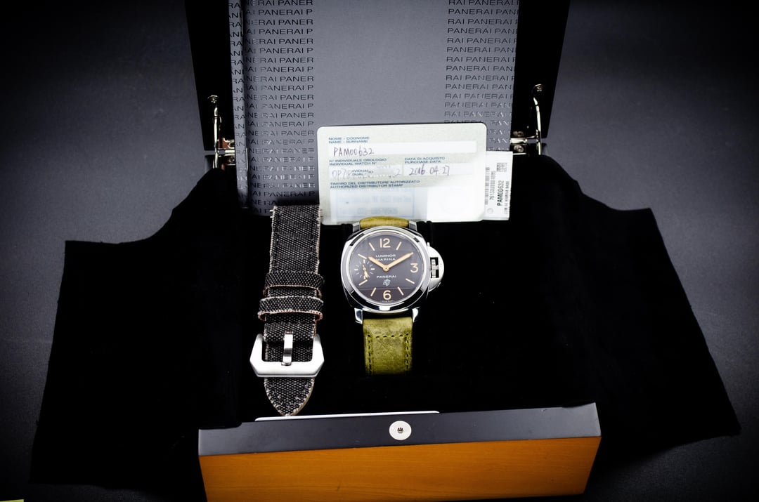 Greetings, WatchEx! Up for sale is a beautiful and pure Panerai, the Luminor Base Logo (PAM00632). This is a boutique-exclusive piece featuring the rare **Tobacco dial** and the satisfaction of a **manual wind** movement. **Key Details:** Condition: **In excellent condition, rated at 9.8/10**. See detailed photos for full transparency. Included: Box, manual, warranty card (dated 2016), and **OEM green leather strap and AM fabric**. Reference: PAM00632 Case Size: 44mm Stainless Steel Movement: Manual-Winding OP X Asking: **$4300** Trades: **TRADES ALWAYS WELCOME** Dealer: CastleWatchSupply All pics -> [**https://drive.google.com/drive/folders/1BEySRtXXj2MNIEYCO4lzqdiQ0ysxWZ9S?usp=drive\_link**](https://drive.google.com/drive/folders/1BEySRtXXj2MNIEYCO4lzqdiQ0ysxWZ9S?usp=drive_link) Timestamp -> [**https://drive.google.com/drive/folders/16-axKsmeNs20nyymxywI2tp\_ywFeyoJU?usp=drive\_link**](https://drive.google.com/drive/folders/16-axKsmeNs20nyymxywI2tp_ywFeyoJU?usp=drive_link) Located: Dallas TX