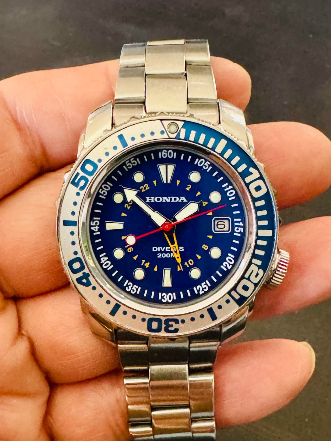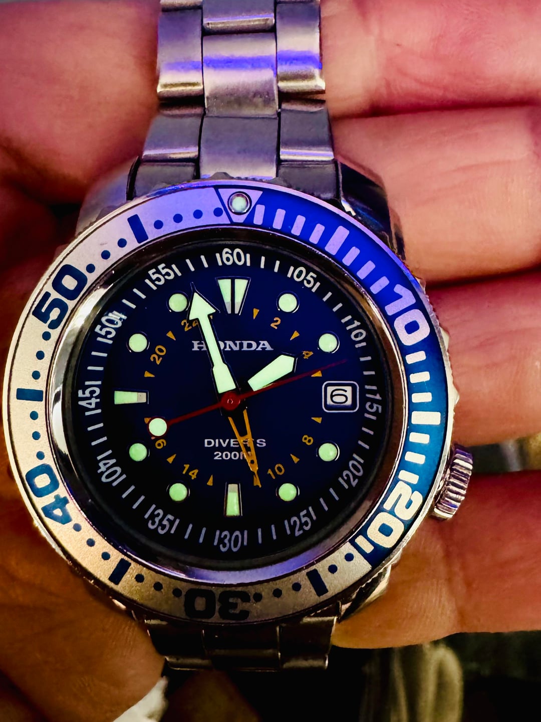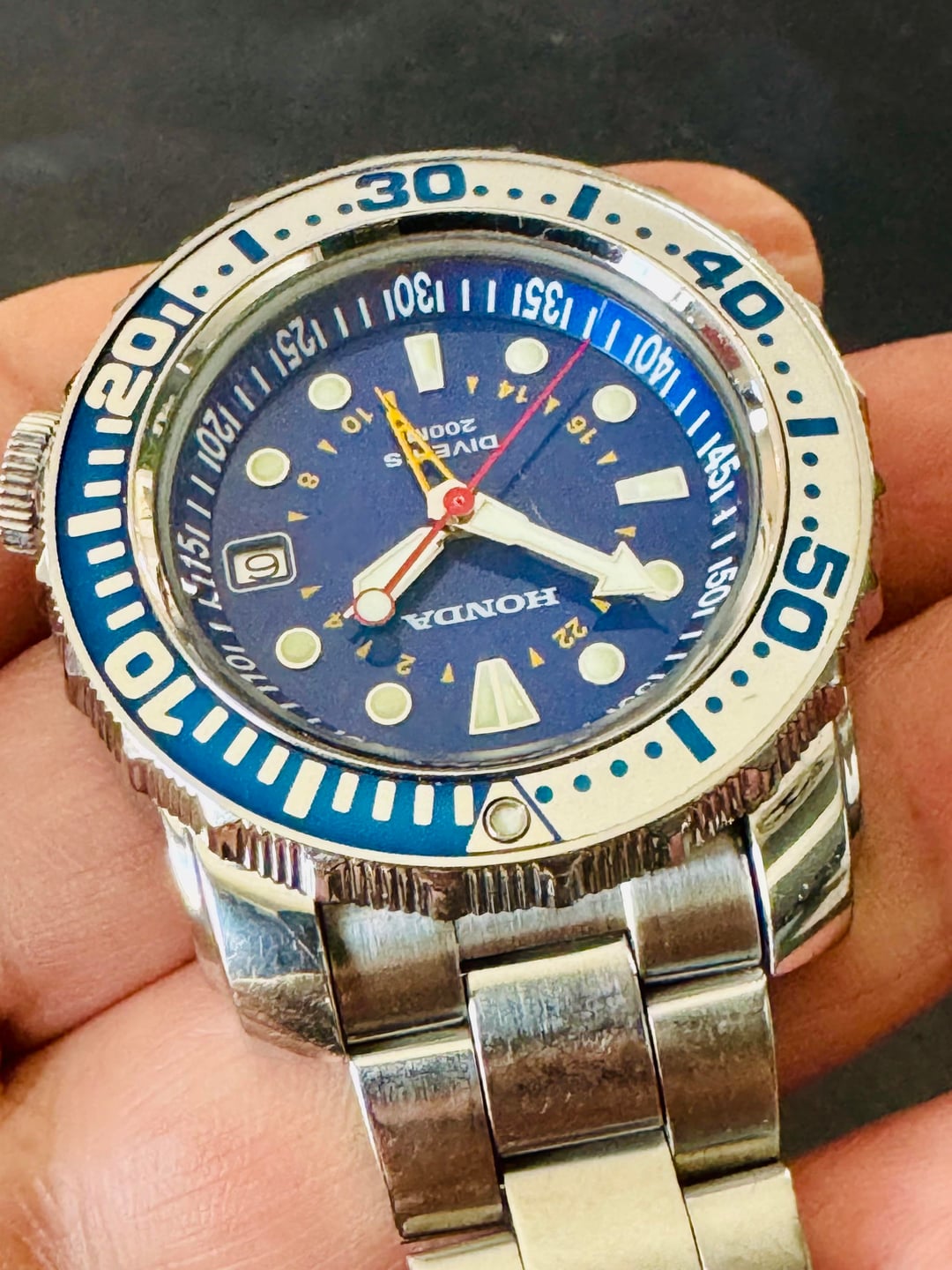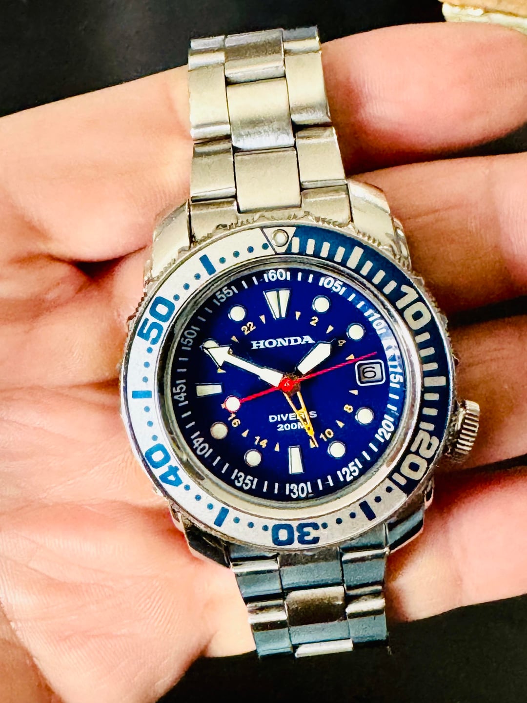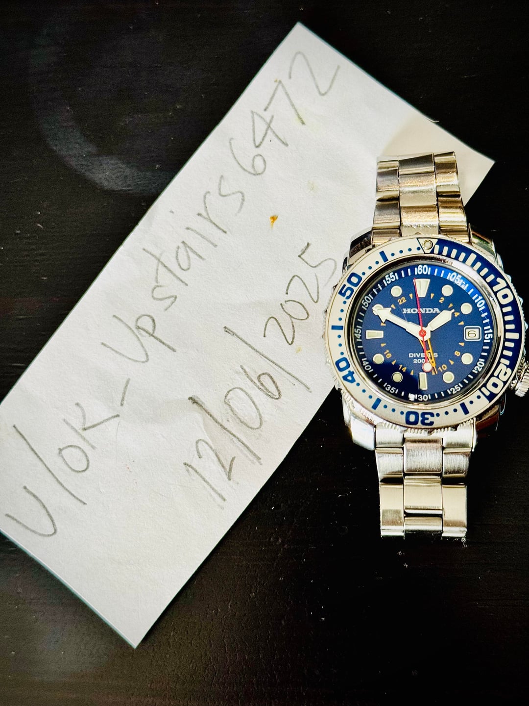 Hi everyone. I’m selling my JDM rare Seiko/Honda Collaboration YT57-0AA0. It’s kinetic which works like an automatic watch, which charges the battery capacitor when using it. Price is $320 free shipping Conus only. I haven’t tested waterproof, so please be aware. The watch is running great, with minimal scratches due to normal use. Very Clean and Sharp condition. Payment via PayPal FF, or Zelle. Thanks.
