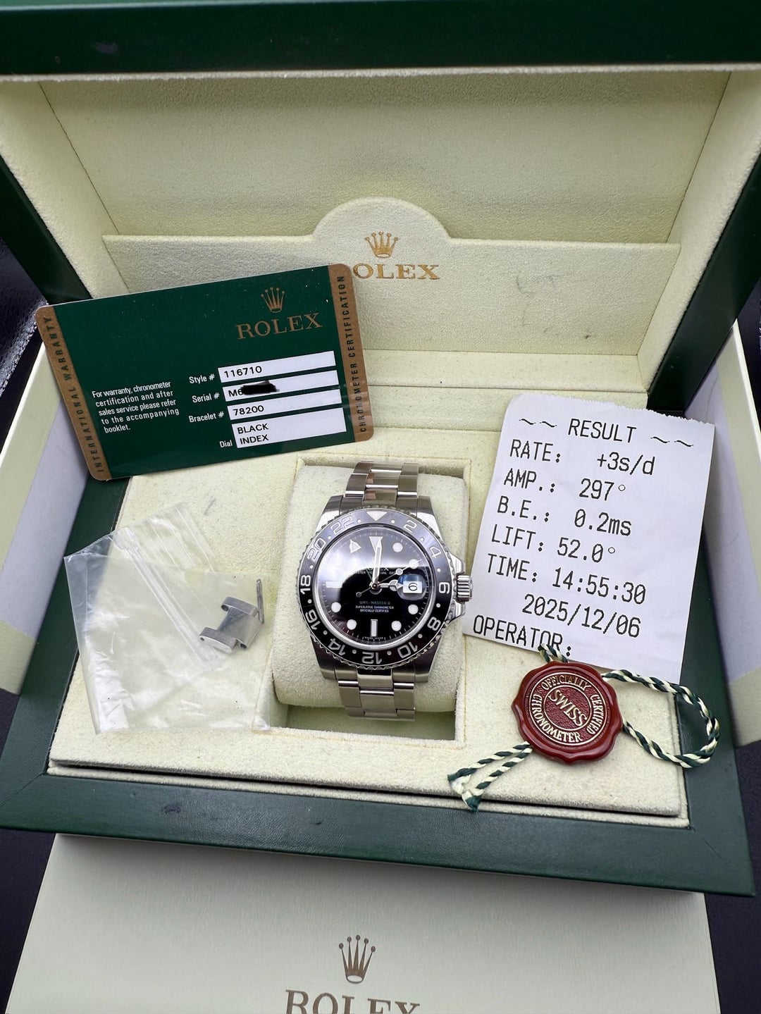 GMT MASTER II REF 116710LN Year: (2008) accessories: -Box -Outer box -factory warranty card -service RSC card (warranty valid until April of 2026) -all links -booklets *Reposting as there is a scratch on crystal and bezel insert, therefore is now 1️⃣1️⃣.5️⃣+L firm True collectors piece set for 1️⃣1️⃣.5️⃣+L✈️