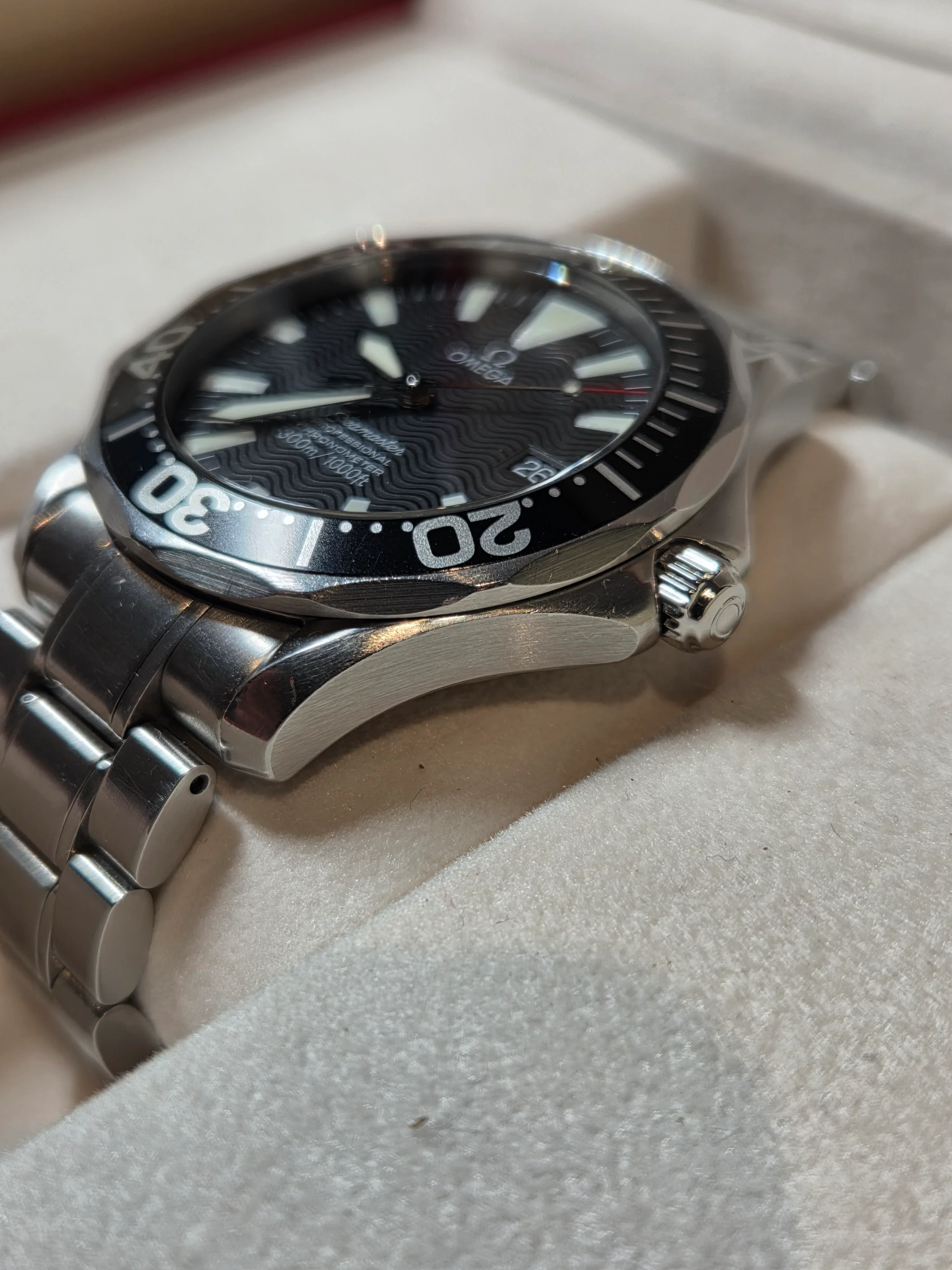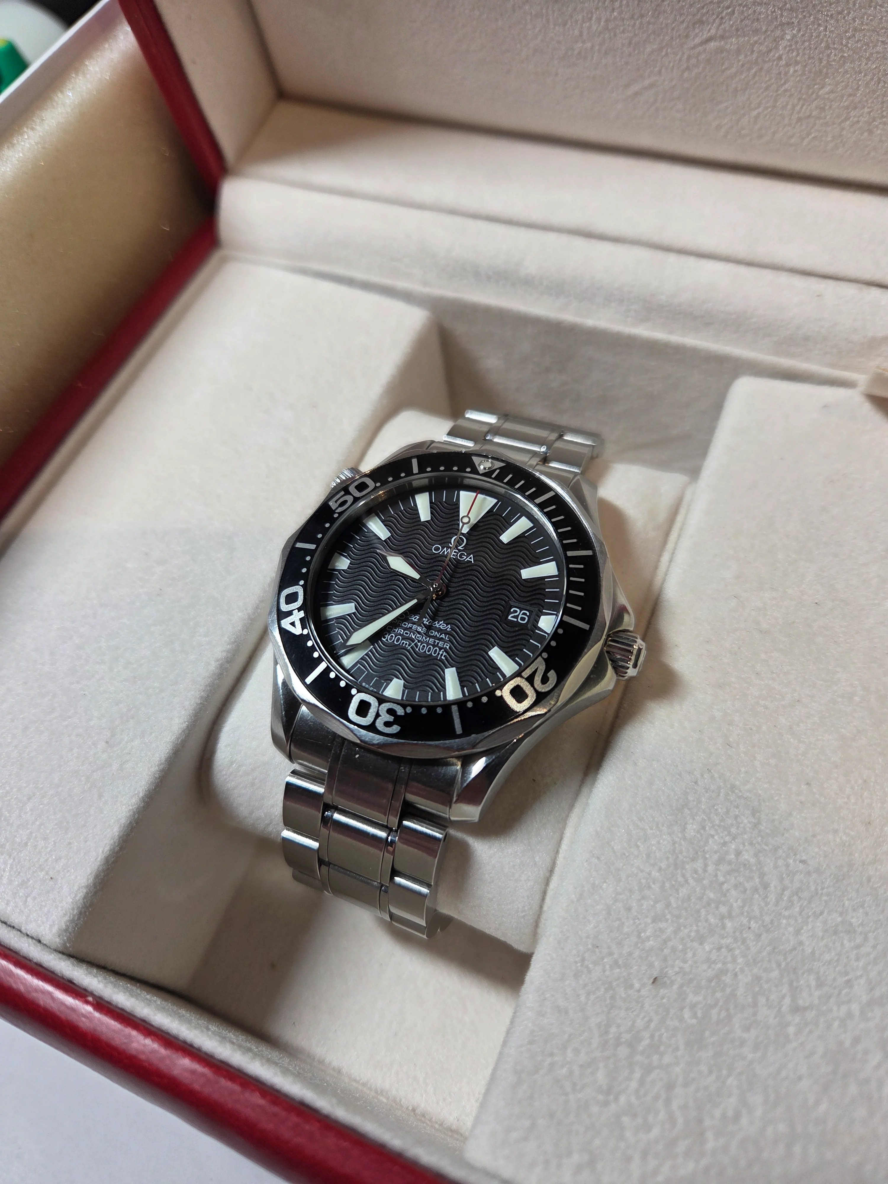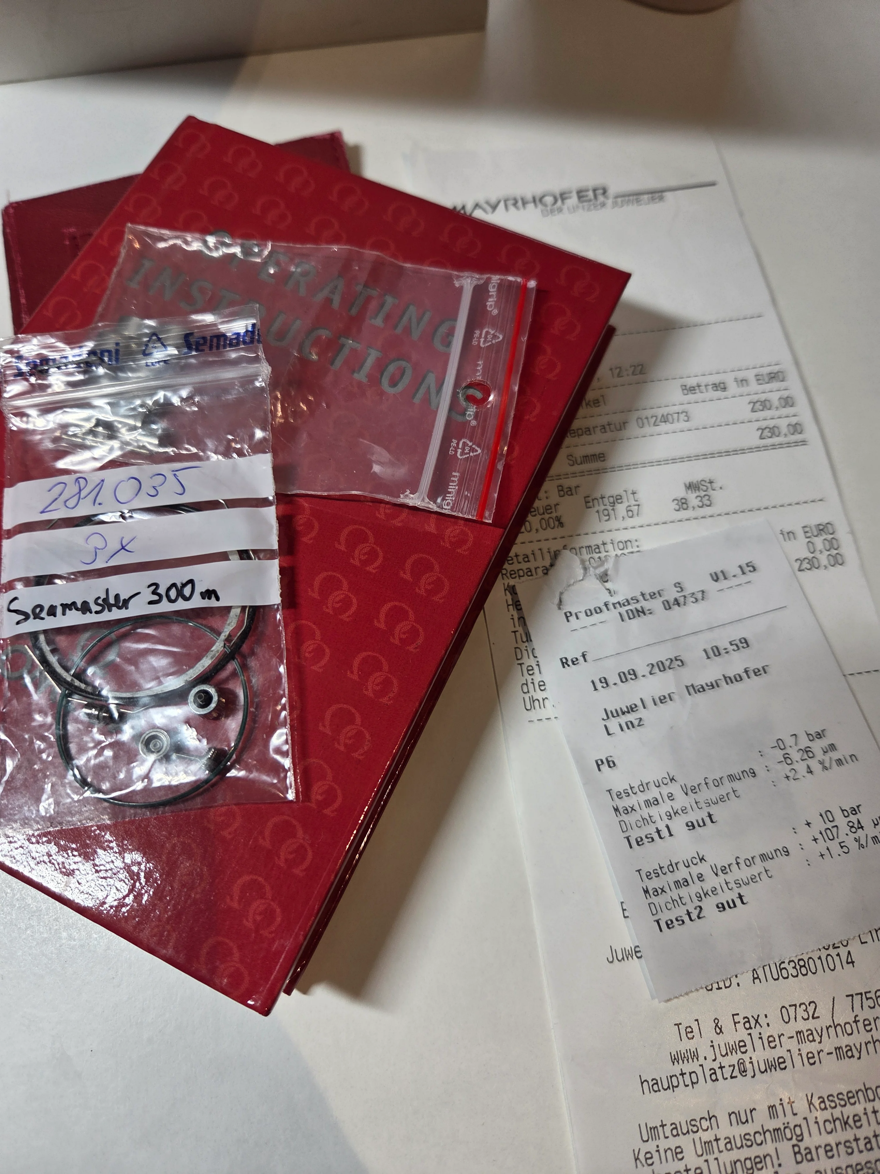 The watch has just had its water resistance service by local authorized dealer. All gaskets, tubes, and crowns were replaced, so the watch is ready to dive. Runs well.