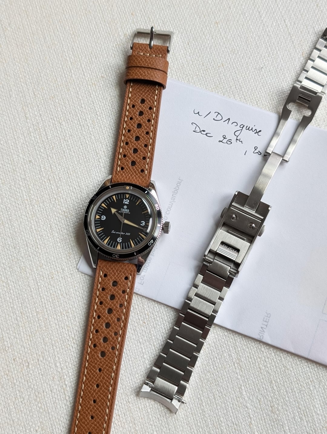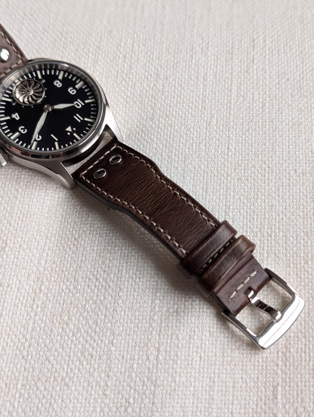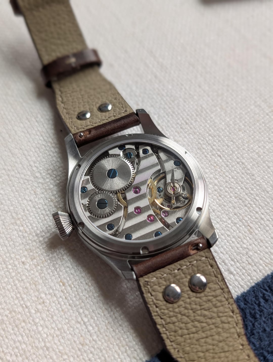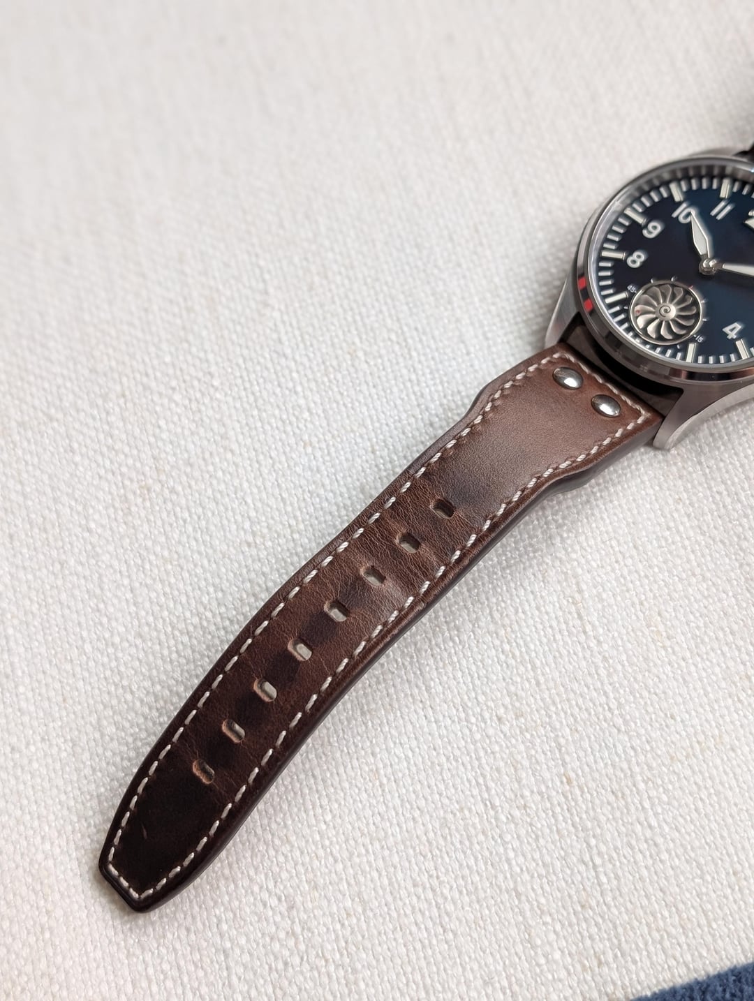 Up for sale are 2 of my watches that aren't getting the wrist time they deserve, so I'm hoping to re-home them to a more loving space (all in the Christmas spirit of course). All watches are for sale within the US, accepting PayPal, venmo, or Zelle. Happy to do PayPal g&s if you cover the 3% fee. Shipping with USPS ground advantage included in asking prices. Thorn T026 SeaMonster. A homage of the omega reissue, this one blends vintage vibes with modern materials and features. Boxed sapphire, OTF clasp, quick release bracelet, PT5000 inside, all the good stuff. 38mm, 12.3mm thick, 19mm lugs. Full specs in the link below. Lovely piece of watch, but I'm not clicking with it. Comes with full box, all links, warranty card, and an extra 19mm brown leather strap that's not been used it. It seems to be sold out on AliExpress and Thorn's website now too. Asking $160 shipped within the US or best offer Link: https://www.thornwatches.com/products/thorn-38mm-automatic-watch-1950s-tribute-collection-t026?variant=48942832025908 Hruodland F016: this one homages the Big Pilot from IWC, and knocks it out the park. The seconds hand is a spinning turbine, the deep blue sunburst dial is subdued until it pops in the right light. Lovely piece of sapphire on top, crisp winding from the seagull manual movement in the back. It's a bigger watch at 43mm and 22mm lug width, but the short L2L makes it wearable for wrists 6.5" and up. Comes with the box, warranty card, and strap tool. Strap is just barely broken in, quite a stunning watch Asking $115 shipped within US or best offer Link: https://www.thornwatches.com/products/hruodland-36mm-st3620-mechanical-men-watch-f016