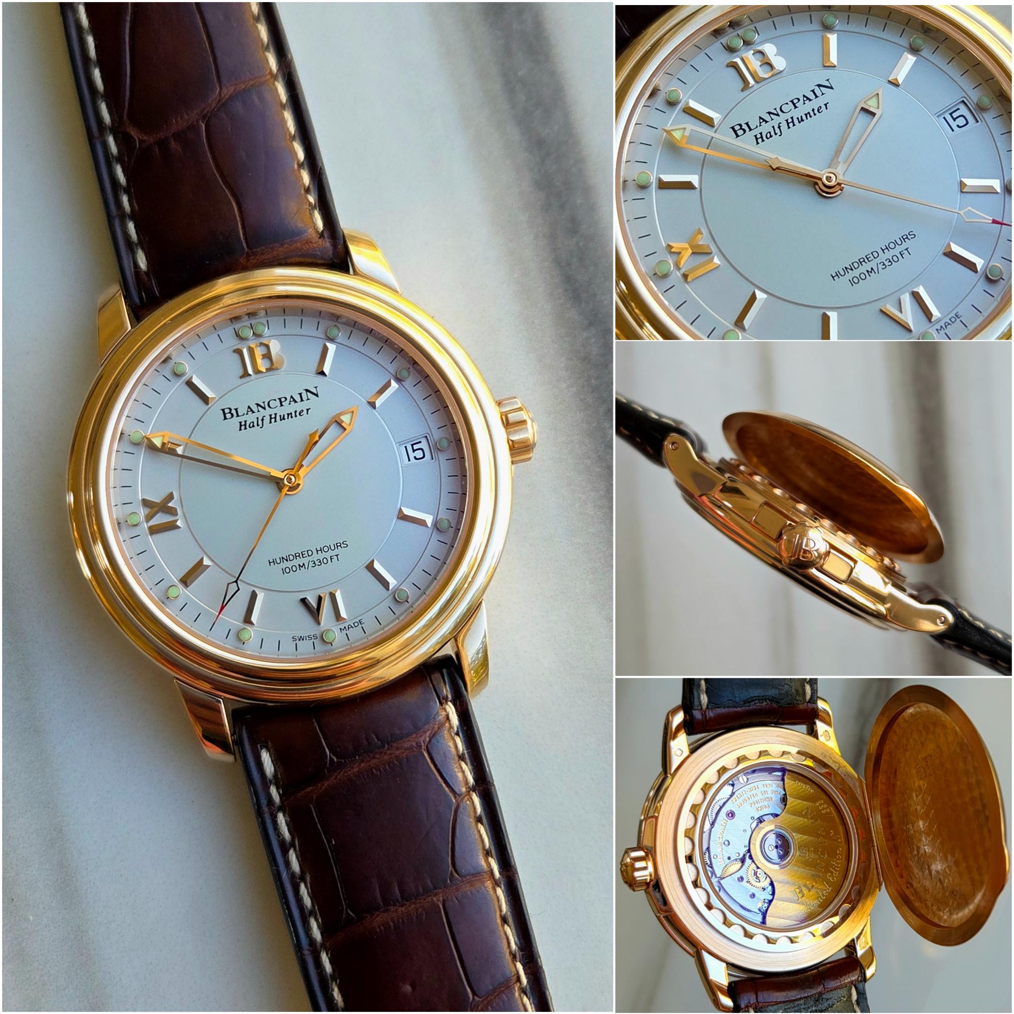🎄 **12 Days of Christmas** 🎄 Continuing the 12 Days of Christmas with a watch that’s all about what lies beneath the surface: the **Blancpain Léman Half Hunter** in gold. Because the finest things, whether traditions or timepieces, are not meant to be seen constantly — only revealed when the moment is right. ✨ **Day 4 – The Reveal** ✨ At first glance, it presents as a refined, traditional dress watch. But open the hinged half-hunter caseback, and it reveals a beautifully finished mechanical movement — a reminder that some of the most meaningful details aren’t meant to be seen at first glance. What makes this piece special: Classic Blancpain Léman design — elegant, balanced, and timeless. 38mm rose gold case with a hinged half-hunter back. Exhibition movement revealed only when you choose to look. A watch that rewards curiosity and appreciation for traditional watchmaking. Understated on the wrist, yet deeply thoughtful in execution, this is a piece for collectors who value craftsmanship, discretion, and the quiet pleasure of discovery. Reference: 3100-3642-53 Comes with box and papers. Factory service completed by Blancpain December 2025 and carries a 2-year service warranty. More images: [https://imgur.com/a/dBu3tA9](https://imgur.com/a/dBu3tA9) $8,750 plus shipping 🎄Christmas reminds us that the most meaningful revelations arrive quietly — revealed not by display, but by intention. The Half Hunter is a fitting reminder this season that the best things are often revealed slowly. 🛫 All watches shipped FedEx fully insured. Local pickup available in Los Angeles area. 💬Positive feedback from hundreds of successful transactions across the watch community, including WUS, Chrono24, eBay, Facebook, and Reddit. I’m always happy to connect by phone or video call to answer questions or verify details. Zelle, Venmo and wire accepted. ⭐150+ five-star reviews on Chrono24 — buy with confidence. ⌚I have a wide range of exceptional watches available, with new pieces added every week.