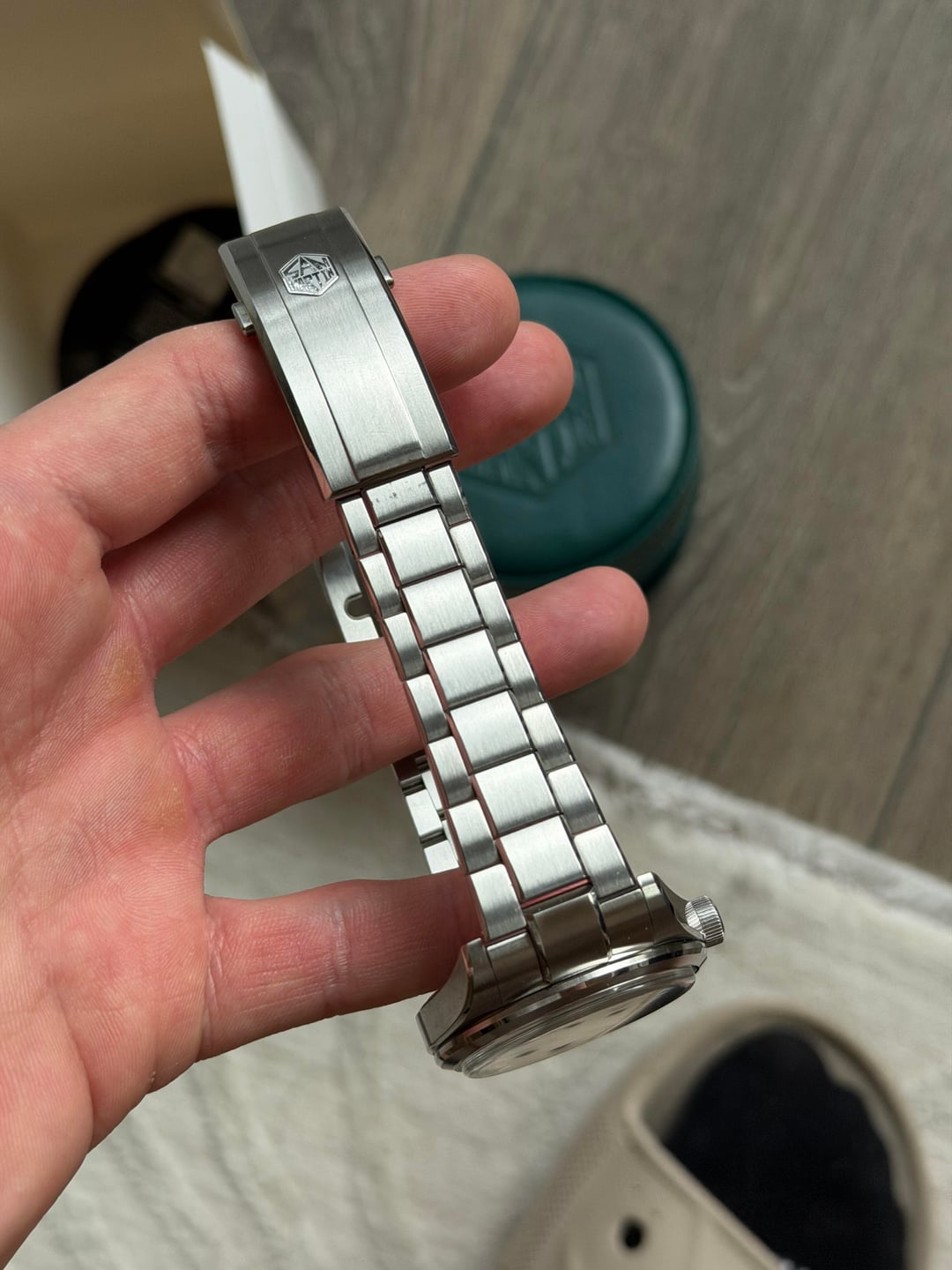 Hey watchexchange, listed today for sale is my **San Martin SN0144 True GMT** with a beautiful green enamel dial. The enamel dial pattern is inspired by traditional Chinese pottery and as expected from San Martin, this is an excellently finished watch with beautiful mix of fine brushed and polished surfaces. It features a true GMT (independent jumping hour hand) which wears amazingly at 39mm. Case dimensions are well balanced as expected. The watch also features an easy to use on the fly microadjust system. **Included:** full kit — inner / outer boxes, manuals, warranty card, and 2 extra links, sized currently for my 7.25inch wrist. **Condition:** **9.5/10**. The watch is in excellent condition with minimal signs of wear. Case, bezel, and bracelet are very clean with no notable scratches or dings. Crystal is clean with no visible marks. GMT and date functions operate properly. Pictures are taken under direct lighting for full transparency. **Price:** **$325USD** \+ label, or **FTF in Vancouver, Canada**. Currently would run you 450+tax on aliexpress for the watch on bracelet I accept **PayPal F&F, Wise (TransferWise)**. Will do **G&S if buyer covers fees and has references**. **EMT/cash for local meetups and Canadian buyers**. I’m a collector, not a dealer — this is a hobby, not a livelihood. I don’t provide any warranty, but I do have **100% positive feedback on this sub**. Happy to answer any questions or provide additional photos.