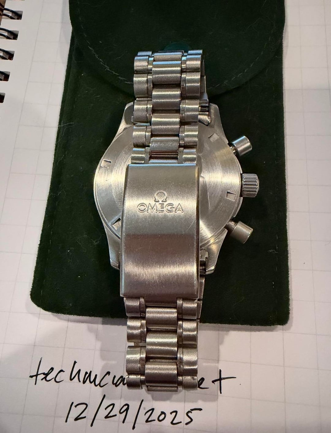 OMEGA Dynamic III Chronograph REFERENCE: 5240.50 CRYSTAL: Sapphire APPROXIMATE AGE: 1990s CASE: Stainless Steel CASE SIZE: 38.0mm CASE THICKNESS: 13.0mm CALIBER: 1138 MOVEMENT TYPE: Automatic WATER RESISTANCE: 50 meters POWER RESERVE: 40 hours BRACELET/STRAP MATERIAL: Stainless Steel LUG WIDTH: 20mm BOX/PAPERS: None CONDITION: Previous owner reported that the watch was recently serviced and is running well at +-10s/day with an amplitude around 280. I’m not a watchmaker so I can’t confirm details, but it is running well. Chronograph works as expected. The case is in good shape with some light scratches and no major damage. The dial is in good condition. There are some flaws on the hands lume. See pictures for details. PRICE: Asking $1500 USD. Shipping covered by me. PayPal or Zelle accepted. US buyers only. G&S fee will be covered by buyer if requested.