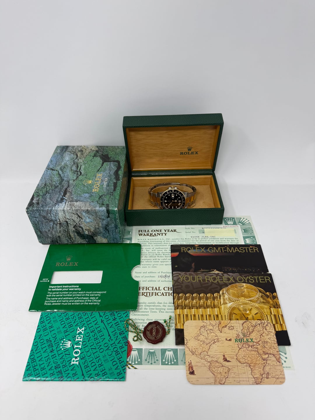 Let me begin by saying... if anybody would like to talk over the phone or FaceTime, please reach out and I can make that happen. I’ve done tons of deals in a lot of different places, with all extremely satisfied customers. I’ve done tons of deals here. Feel free to check out my transaction history here on Watch Ex! This watch comes in good pre-owned condition. Please see the pictures as they represent the condition well. Clean crystal with the exception of a few faint marks if you look hard enough, no chips. Bezel insert is in nice shape with some hairlines throughout. Nice fat lugs. Tritium dial. The dial has a couple marks and maybe spec of dust/hair here and there. Tight bracelet. N serial 1991 production. R clasp code 1993 period correct. Runs good and functions as it should (timegrapher stats pictured). Comes with box, papers dated 12/18/94, etc (everything pictured). Who doesn’t love a nice two tone GMT?! Please make sure to check out the imgur link below which includes more pictures for your viewing pleasure! Pictures: https://imgur.com/a/HCSC7cG TimeStamp: https://imgur.com/a/EWtJP6b I am asking for $10,400 net to me (which includes FedEx Overnight Insured Shipping). I accept wire and Zelle payments only. Located in Charleston, SC. Thanks for checking out my watch! New Instagram: @dhlt.2020 Let me know if you’d like to see what else I have available for sale in my collection! I can source pretty much anything you’re looking for, private message me with any questions!