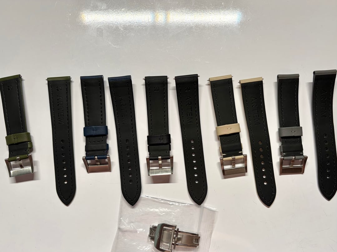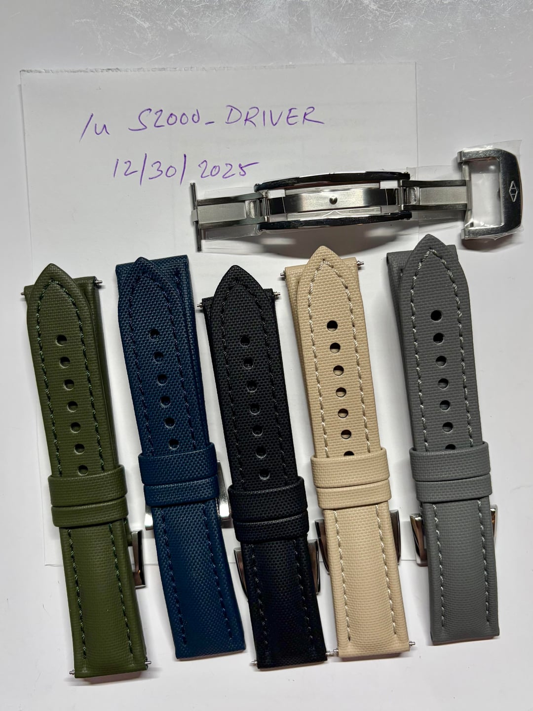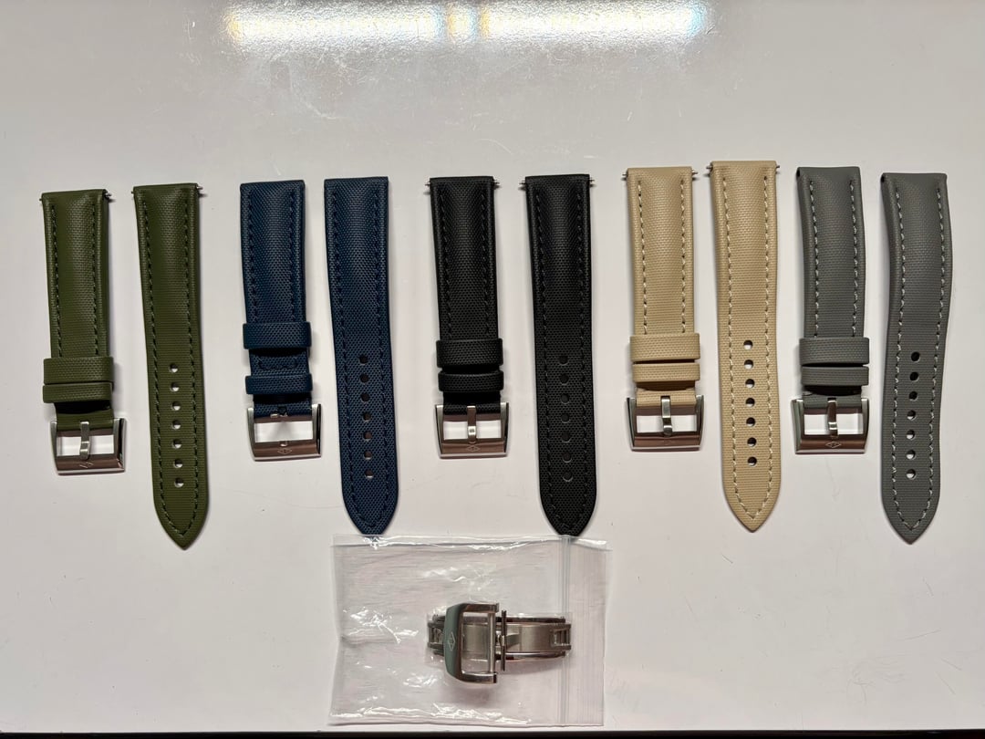 Olive, Navy, Black and Sand are 20mm. Grey is 19mm. Standard length. Olive and Sand are unworn. Others worn sparingly. RM style deployant is 18mm and unused - $75 $75 each shipped within the US.