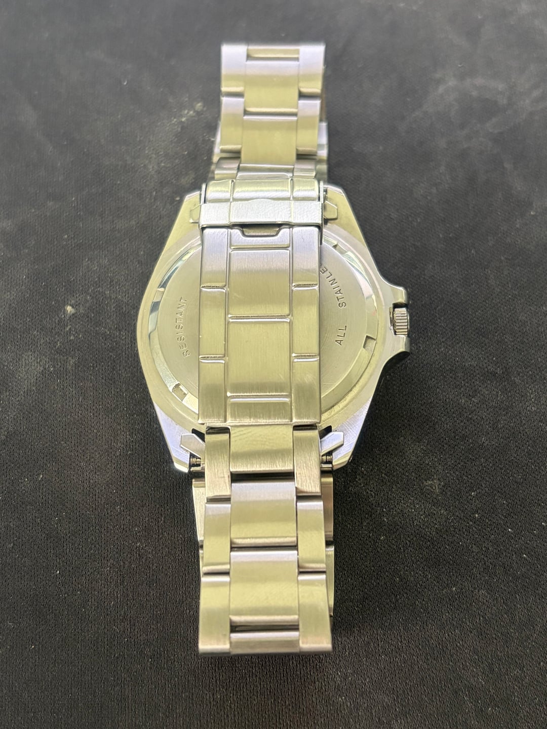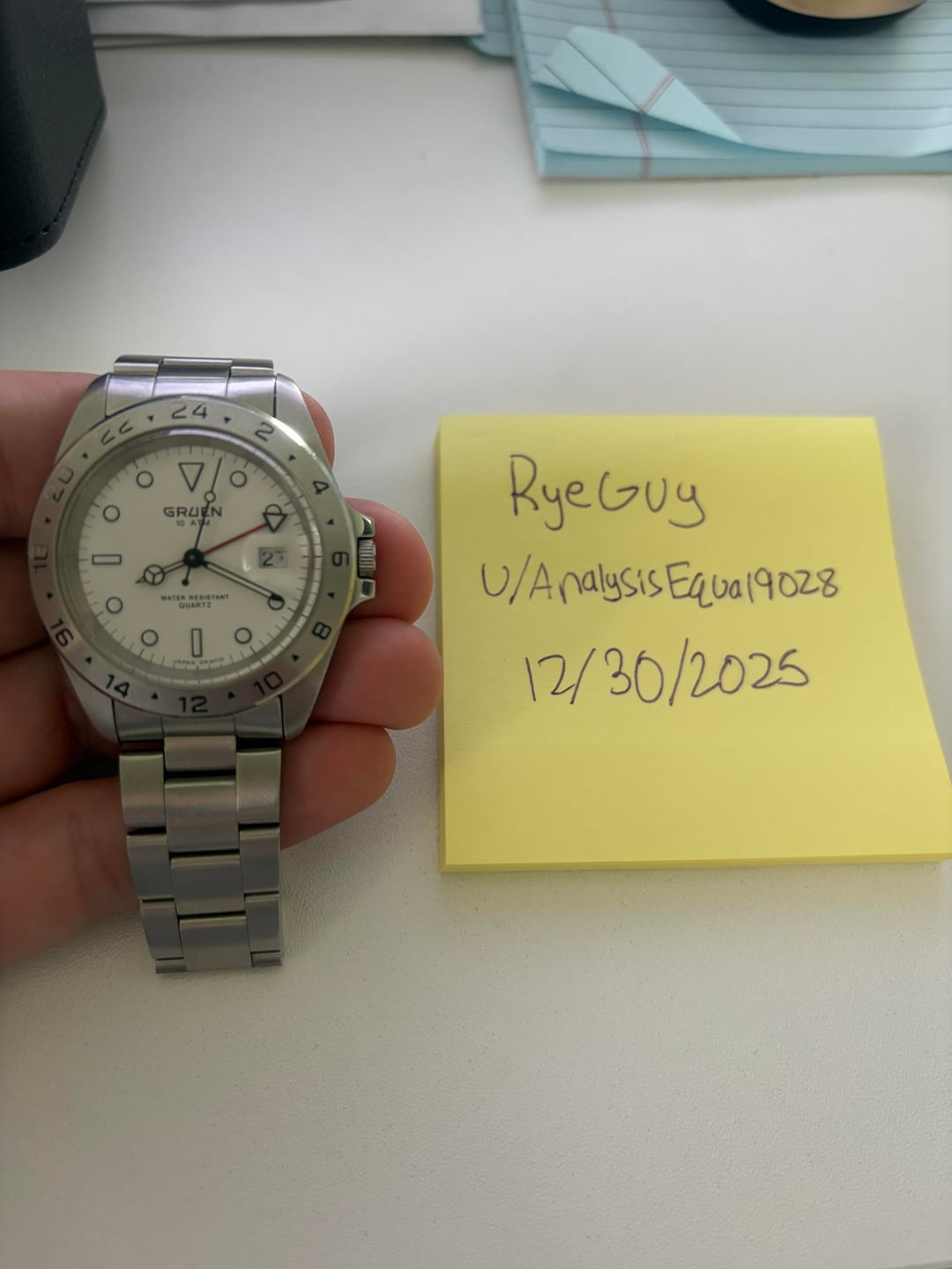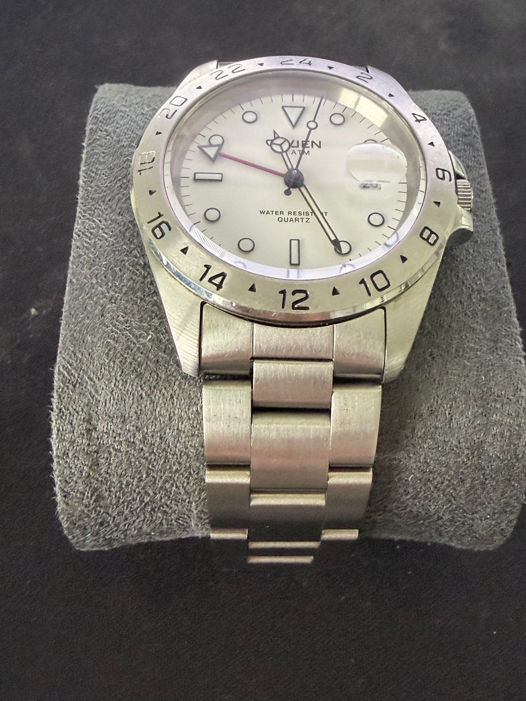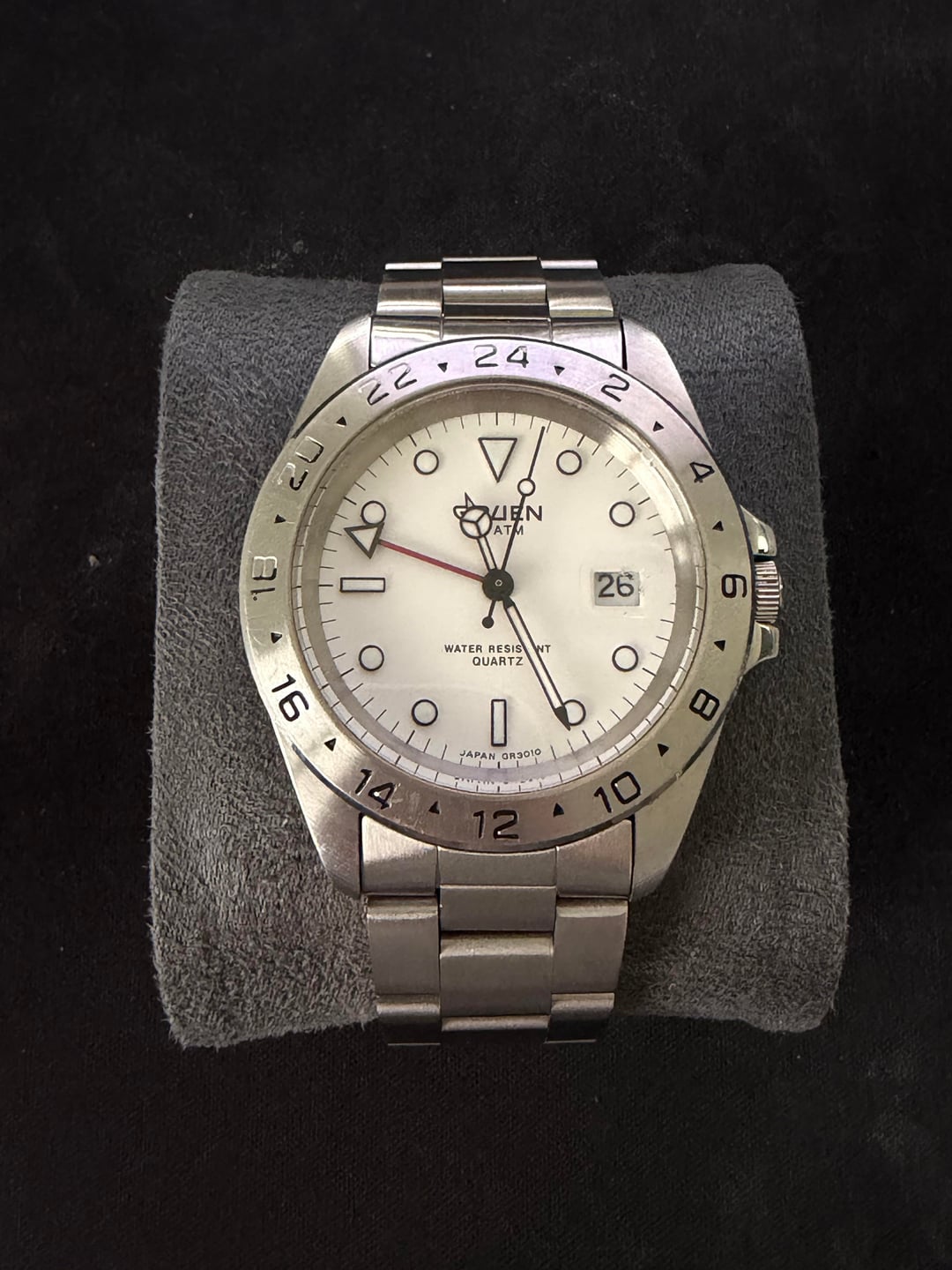 Hi all, Another cool vintage watch that just does not get the love it deserves. The Gruen 39mm is a Quartz Explorer II Style GMT Watch with a Polar Dial. I think this came out in the 1990s. Has an aftermarket bracelet on but I also have the original bracelet however, the bracelet was damaged upon me receiving it, maybe you can fix it where I could not. Watch does have some wear as shown in the photos, but still works perfectly. Looking for around 350. PayPal goods and services.