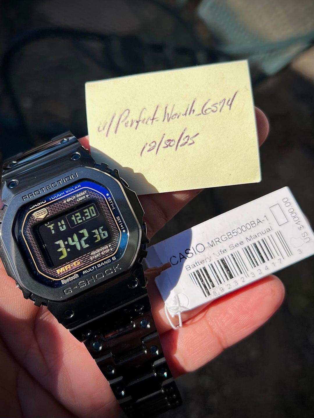 Hello up for sale (or trade) is my lightly used Casio G‑Shock MRG‑B5000BA in MINT condition. This watch has been very well cared for and shows minimal signs of wear. It comes with the full kit box, manuals, tags, and all original packaging. All original links are included, and the extra links are brand new and never installed. Price: $2,150 shipped CONUS. I’m also open to trading, specifically for a MRG‑B5000B, nothing else. Feel free to reach out with any questions or requests. Thanks for looking!
