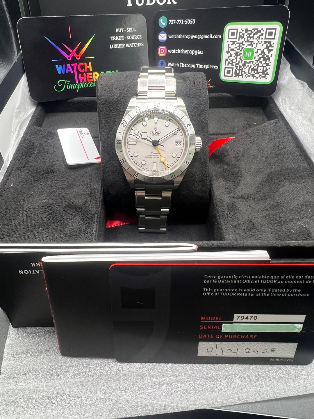**F/S: Tudor Black Bay Pro White 12/25 Ref. 79470** **Shipping from Florida.** **Specs:** \* Beautiful Opaline domed dial \* Self-winding \* Size 39 steel case w fixed bezel \* SS bracelet w/T-Fit clasp \* 200M Water Resistance \* 70-hour power reserve \* MT5652 (COSC) movement **Includes**: Warranty card 12/25, double boxed, booklets, hang tag and full links. **Condition:** 10/10 unworn some stickers **Price: $4,299.00 + Insured shipping to your local FedEx for pick-up in Con US**. I am also open to a face-to-face public transaction in or around the Tampa Florida Region, within reason. I have many strong and viable references within Reddit and from Buy/Sell/Trade Watch Facebook groups. Always willing to jump on a call or meeting link to show you the watch. Thank you and please reach out if you have any questions or concerns. Florida residents may be subject to sales tax w/o a valid resale cert. ***No Trades, TY*** **Location**: Tampa Florida **Payment:** Zelle or Wire Timestamp: [https://imgur.com/a/KtwnbiA](https://imgur.com/a/KtwnbiA) FB: Watch Therapy Timepieces IG: [@watchtherapy4u](https://www.reddit.com/u/watchtherapy4u/)