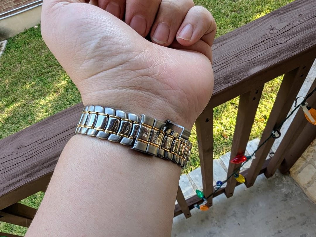 Timestamp: [https://imgur.com/YG44GHm](https://imgur.com/YG44GHm) For your consideration is my Ebel Voyager in 18K yellow gold and stainless steel. Watch is a great 38mm in size. Great function for a traveler with an inner rotating 24 hour GMT ring and an 18K yellow gold world time bezel. I have a large wrist and had to buy an extra link. These links are hard to come by, so I bought a stainless steel one, so it will come with one stainless steel link but because the gold part is thin and shiny, you really can't tell it, plus now it fits a larger wrist. It's great looking and has great functions, can't ask for much more. Watch is in great condition. I'm asking $1500 net to me I cover shipping CONUS, watch only, no box or papers.