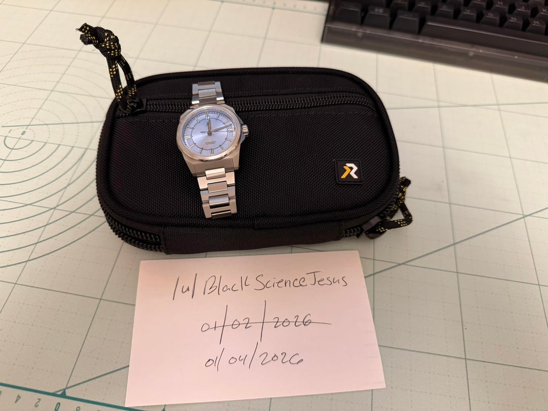 Asking $550 Shipped CONUS This watch currently sells for $690 + tax and tariffs (depending where you live). Absolute steal of a deal at that price for what you get and even better at $550. It's an all titanium watch and bracelet (with a hardness coating). The dial is a beautiful ice blue with a sunburst effect in the middle and a textured chapter ring around that. Lume is good, and the watch wears like a dream with the light titanium body and on the fly microadjust. The dressy dial on this watch marries the tool watch with a more upscale watch making it a perfect daily. I am an attorney, and I've been wearing this one in the office and on hikes. The 36mm diameter is perfect if you have smaller wrists like me, and the lugs curve down creating a more comfortable fit. The watch is in like new condition other than some unfortunate scratches on the case back which I got while traveling. I have photographed those, but I am happy to send more or videos as requested. Sad to see this one go, but I am selling a few watches to save up for a bigger purchase. The watch is only a few months old, so I hope someone can get a great deal on this and really enjoy it. More info on the watch here - [https://www.rzewatches.com/collections/early-access/products/resolute-36-crystal-blue](https://www.rzewatches.com/collections/early-access/products/resolute-36-crystal-blue)