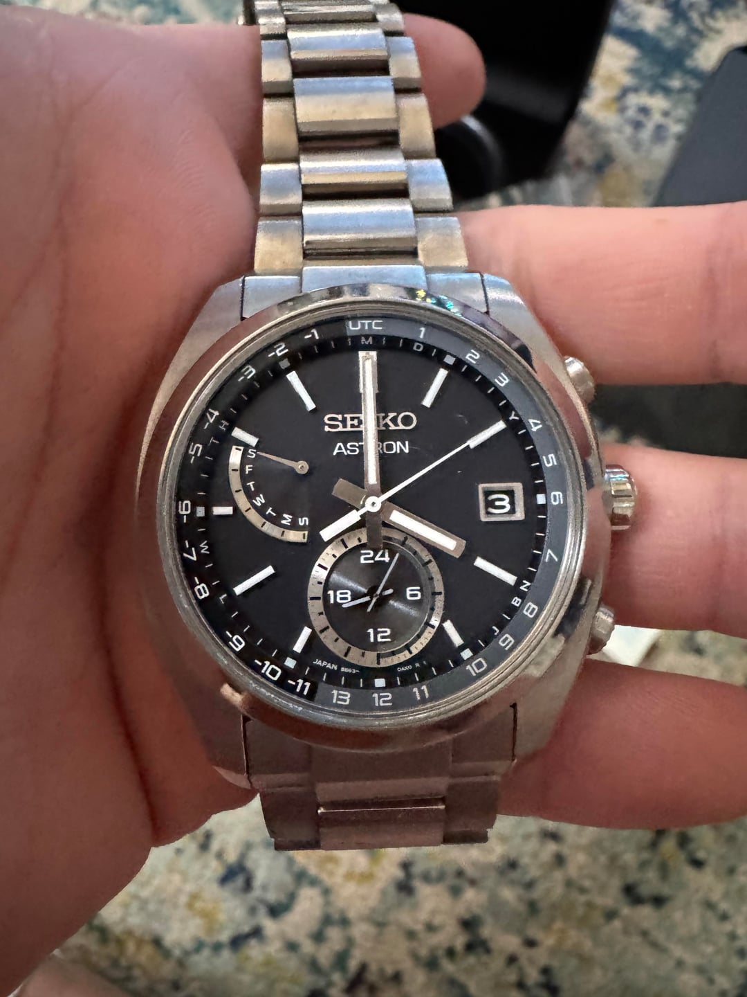 Watch Information: Seiko Astron SBXY015 GPS Solar JDM Price: $500 USD shipped willing to do PayPal G&S but for extra or other methods Condition: some wear on titanium band Purchased in my trip to Tokyo bic camera. Has daily wear in the band but all is functional. Comes with everything that came in the original packaging. I just don’t use this one as often anymore compared to my other watches. Movement: 8B63 Caliber, Radio Wave Solar Quartz (charges from any light, maintains accuracy via radio signals). Case: Pure Titanium with Hard Coating (Diamond Shield). Dial: Black with Lumibrite on hands and indexes for low light visibility. Crystal: Sapphire with Super-Clear Coating. Functions: World Time (25 time zones), Dual Time, Perpetual Calendar, Power Save, Radio Signal Reception. Water Resistance: 10 bar (100 meters). Crown: Screw-lock type for enhanced water resistance. Size: Approximately 41.3mm diameter, 10.6mm thickness. Weight: Around 90g. Based is USA