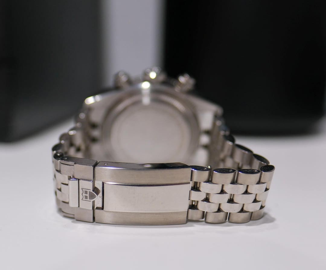 This is a 2024 41mm model with a crisp, eye-catching dial that really pops on the wrist. It adds a ton of personality while still fitting comfortably into a luxury rotation. **Specs & Highlights** * 41mm case * Water resistance to 200m * 70-hour power reserve * COSC-certified movement * Date and chronograph functions **Included in the sale** * Complete set / full kit * Manuals and warranty booklet * Warranty card * All links * Inner and outer boxes * Fully insured shipping (delivery typically within 2 business days) **Condition notes** * Worn 2 times. The day I picked it up and a second day I went back to the AD for a different watch. Chronos just don't do it for me. * Sat in a watch case for most of its life since. Picked up 7/24 * Normal fingerprint smudges from handling. Will wipe away no problem with a cleaning cloth * Images shot with a 16mm lens, so details are probably more than the eye perceives * Case, dial, and crystal are all clean and I see no scratches or any sign of abuse (use) If you have any questions, don’t hesitate to reach out. Happy to chat or provide additional photos. Looking for a quick sale. I picked up a Rolex I'm using this cash to stay out of trouble with the wife. **Asking price: $8,450**
