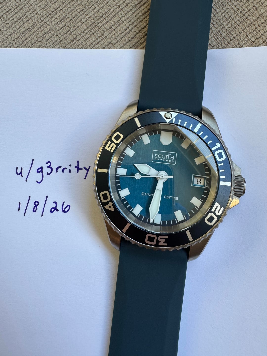 Scurfa Diver One D1-500 Titanium Proto Dial Blue **Price**: $400 shipped CONUS **Condition:** Excellent **Payment:** Venmo, PayPal, Zelle **Included in sale****:** Full set with box, papers, and warranty card from Scurfa. Watch comes on OEM Scurfa blue rubber strap and also includes Scurfa’s titanium bracelet that matches the watch. Bracelet sized to 6.5 inch wrist but includes all links. Your chance to own a Diver One without waiting weeks or months for a day to spend refreshing the website only to still not get one! These are popular and sell out quickly for very good reason. I’m only selling this to free up funds for another watch. (“Downsizing” for the new year.) No trades please. Imgur album with timestamp photo: [https://imgur.com/a/am5eyph](https://imgur.com/a/am5eyph)
