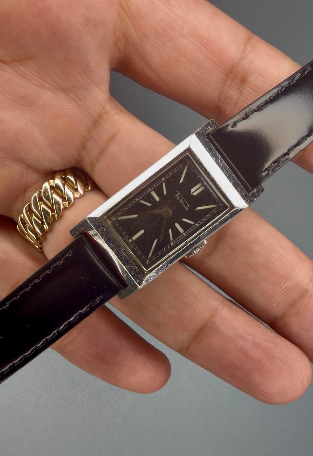 Vintage Tudor Tank -Details: Steel case (unpolished), hesalite crystal, new black leather straps. Rolex signed case on the inside. Back when Rolex and Tudor shared the same cases, before the shield and rose logos. -$1,297 shipped -Includes shipping (US). I accept Venmo, Zelle, CashApp, and PayPal (+4% if using G&S) -Case size: 19x32mm including crown -Movement: manual winding -Timestamp: https://imgur.com/a/PozebNo IG: @ColeccionDeLosSantos TikTok: @Chris.DeLosSantos