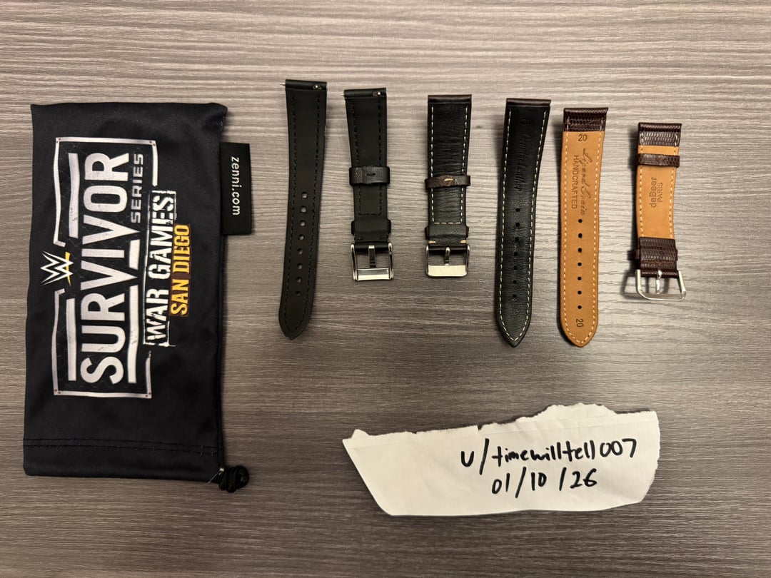 $50 shipped for all USPS shipping (CONUS) Payment Zelle or Venmo All straps are in good-used condition (no issues) Straps: - 19mm black sailcloth strap - 20mm dark brown leather strap - 20mm deerbeer paris snakeskin leather strap