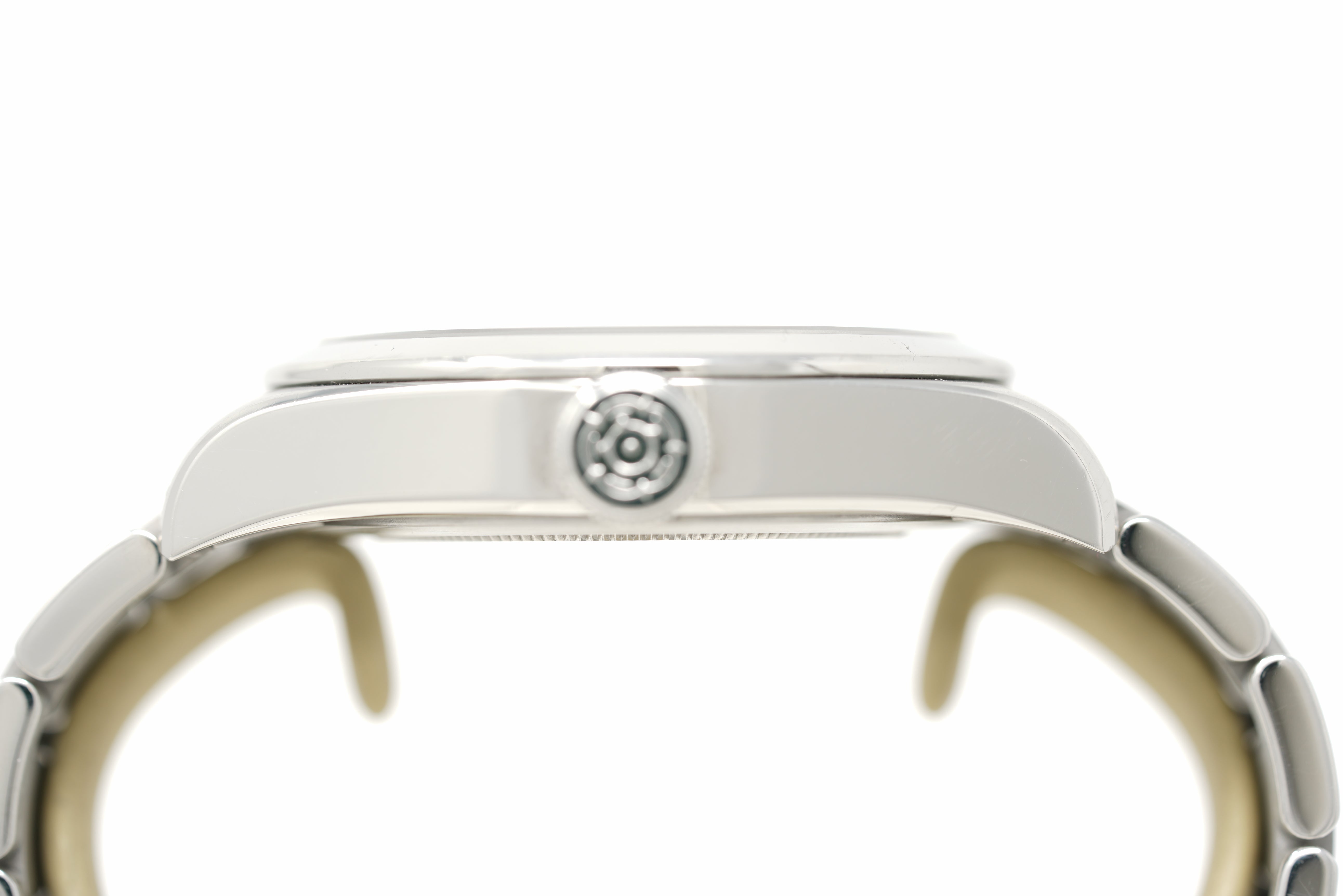 This pre-owned watch is in 81% condition due to marks on the lugs, bezel, and throughout the case. The bracelet is in 77% condition due to marks on the links and clasp. Originally purchased in June 2021, this watch comes with its inner and outer box, instruction manual, warranty card, hangtag, and the one-year Topper Pre-Owned Select warranty.