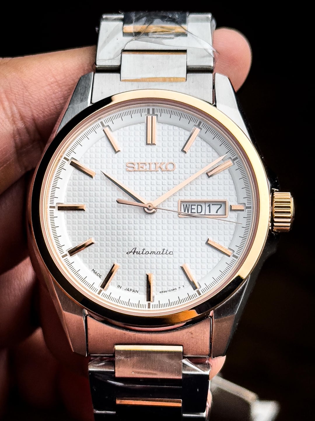 italiano![[WTS] Rose Gold Seiko Presage Waffle Dial on H-Link Bracelet Ref. SRP468J | Brand New (Box, Papers, Tag) | $545 1](https://cdn-cf.watchpatrol.net/600x600/img/full/322cc608ba226a70ed63c465981f8125cac09906.jpg)