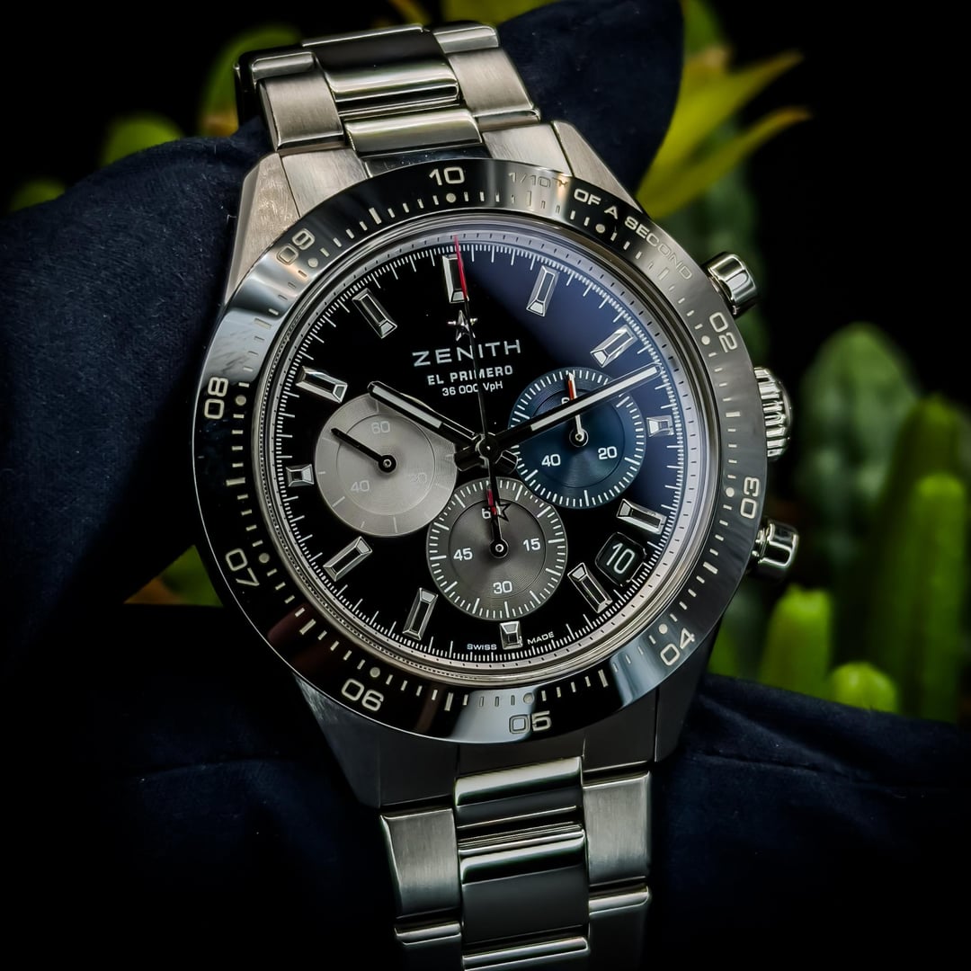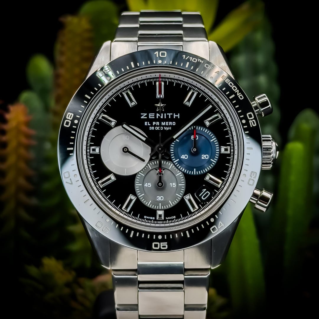 **Zenith Chronomaster Sport Black Dial El Primero Mint 03.3100.3600/21.M3100 B&P 2023** 41mm Stainless Steel Case | Zenith El Primero Caliber 3600 Automatic | 1/10th Second Chronograph | Black Dial with Tricolor Subdials | Ceramic Bezel | Sapphire Crystal | 100m Water Resistance | Stainless Steel Bracelet with Full Links **Pricing** **Asking: $6995 + Ship** **Trades Always Considered** **Description** The Zenith Chronomaster Sport is a modern icon powered by the high-beat El Primero 3600—offering 1/10th of a second chronograph precision in a sleek 41mm stainless steel case. This 2023 example features the signature tricolor subdials, a crisp black dial, and a ceramic bezel. It comes on the full stainless bracelet with all links and includes box and papers. **Condition** Mint Pre-Owned – Watch shows no visible signs of wear. Running perfectly and all chronograph functions work as expected. Pillow is a little flaky. **Set Includes** * Zenith Presentation Box * Warranty Card (Dated 2023) * Stainless Steel Bracelet with All Links **Shipping** Ships from Scottsdale, AZ – Priority Overnight via FedEx **Hundreds of Deals, References, Reviews, etc. Buy with confidence.** **Find me on IG Cactusluxecollective**