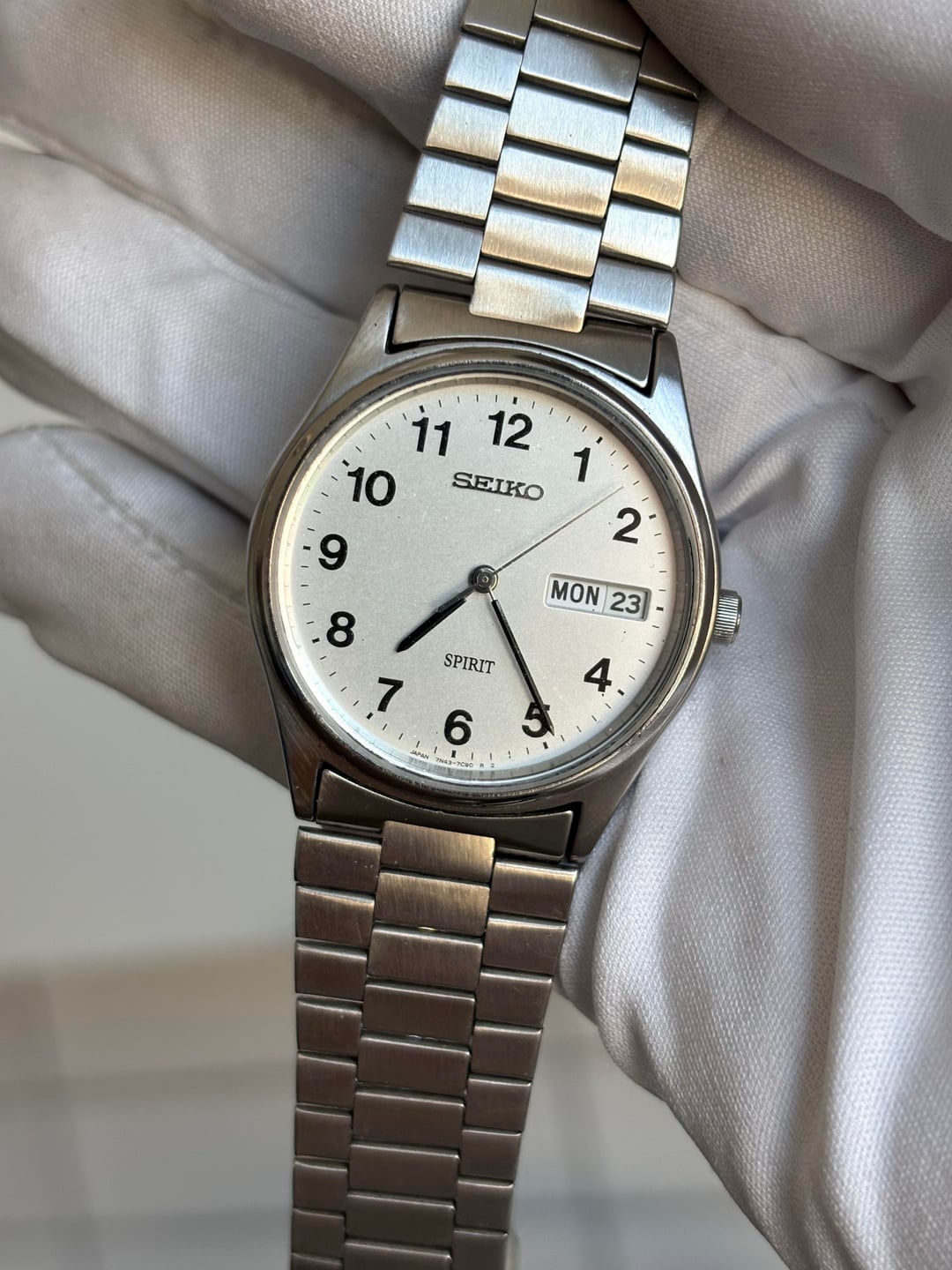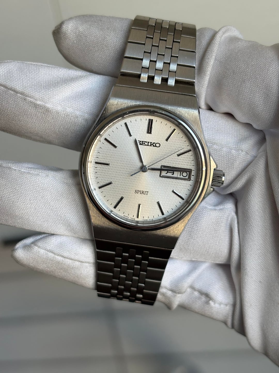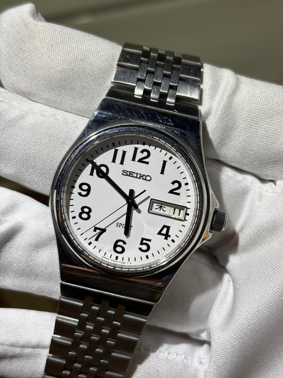 | seiko 7546 8040 SQ Silver Daydate Vintage Men’s Quartz Watch RARE vintagesterlingfinds (421) |