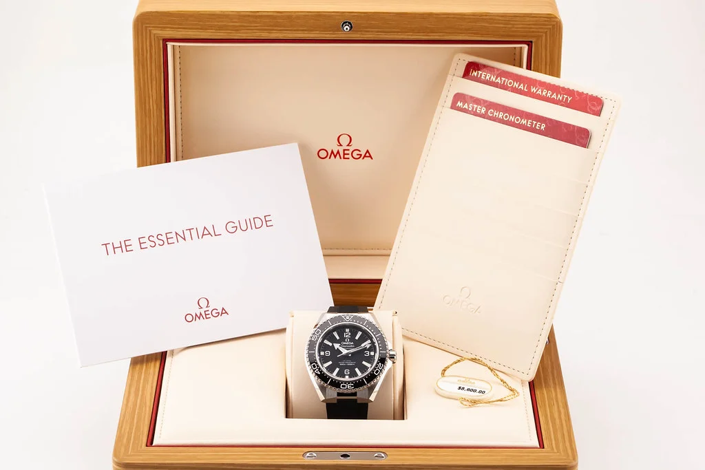 Up for sale is a brand new Omega Planet Ocean 6000M 4th Generation 42mm Black Dial / Black Bezel on Rubber Strap, reference # 217.32.42.21.01.001. It comes complete with all boxes, papers, booklet, hang tag and Omega Warranty Card dated January 2026.