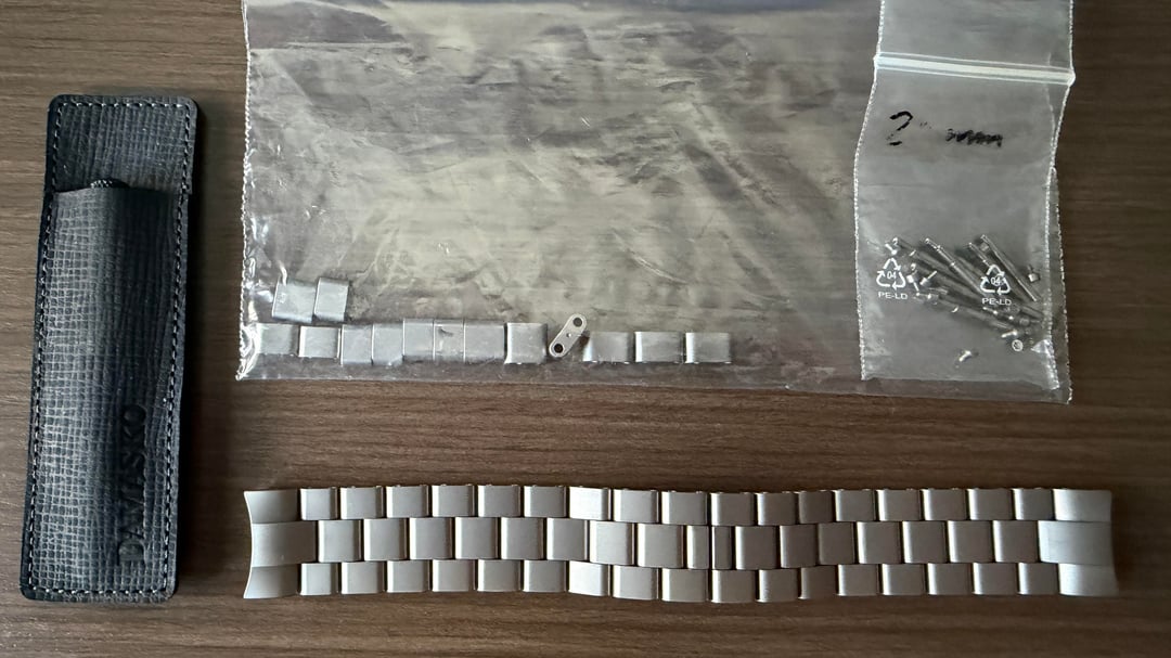 Selling my Damasko Ice-Hardened Bracelet DA/DK 20mm. Bracelet is about 10 years old and has some signs of wear. Please inspect all photos - I did my best to get all angles / sides of the bracelet to give the fairest representation of the bracelet's condition. Bracelet will come with the Damasko screwdriver, extra links, extension links, and all extra screws / pins. I did disassemble/reassemble/clean the entire bracelet to ensure the bracelet articulates smoothly. Asking $300 via PayPal F&F (G&S add 3%) or Venmo. Please feel free to reach out if you have any questions; I have 100% positive feedback on eBay and WatchExchange for over 10 watch transactions.