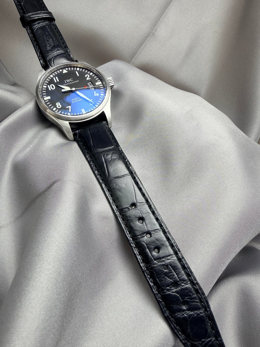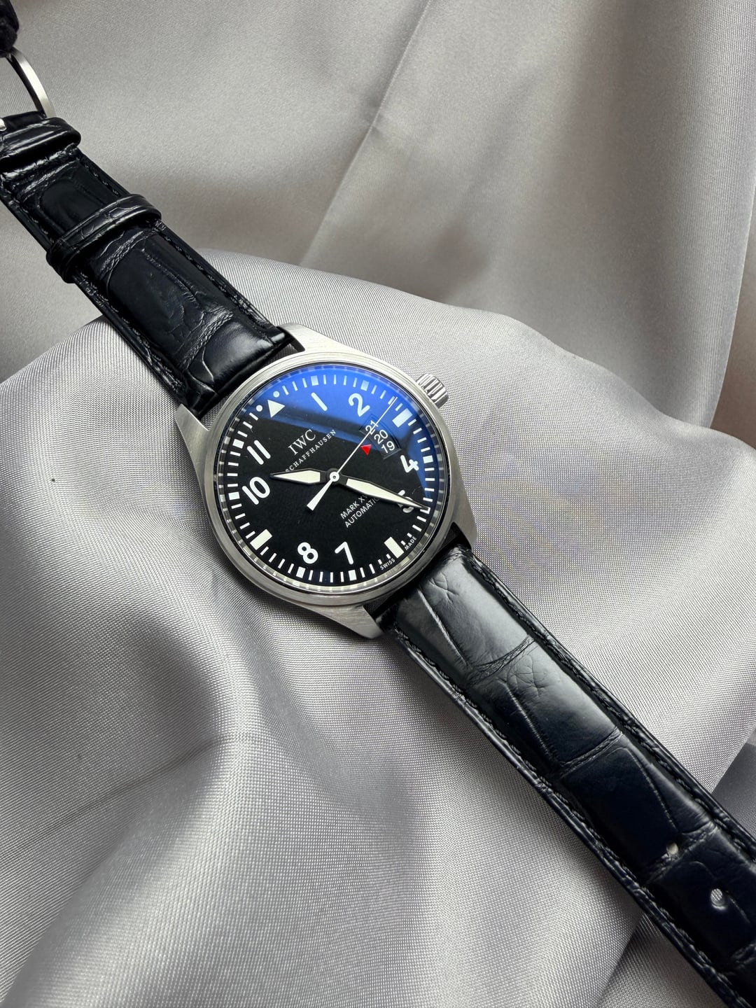 IWC Pilot’s Watch Mark XVII – Ref. IW326501 Year: 2016 Accessories: Box & Certificate Condition: Excellent / Like New Price: $3390 + ship --- Men’s IWC Pilot’s Watch Mark XVII with a 41 mm stainless steel case and a classic black pilot dial featuring luminous hands and Arabic numerals for maximum legibility. The dial includes a date display at 3 o’clock. Powered by an automatic movement with approximately 42 hours of power reserve, protected by a scratch-resistant, glare-proof sapphire crystal. Water resistance is rated to 60 meters / 200 feet. True to IWC’s aviation heritage, the Mark XVII incorporates a soft-iron inner case for anti-magnetic protection and a front crystal secured against sudden drops in air pressure, continuing the tradition established by the legendary IWC Mark 11 of the 1940s. Fitted with an adjustable black leather strap. The watch presents in excellent, like-new condition. --- Specifications - 41 mm stainless steel case - Black dial - Automatic movement - Date display - ~42-hour power reserve - Anti-magnetic soft-iron inner case - Glare-proof sapphire crystal - Water resistance: 60 m / 200 ft