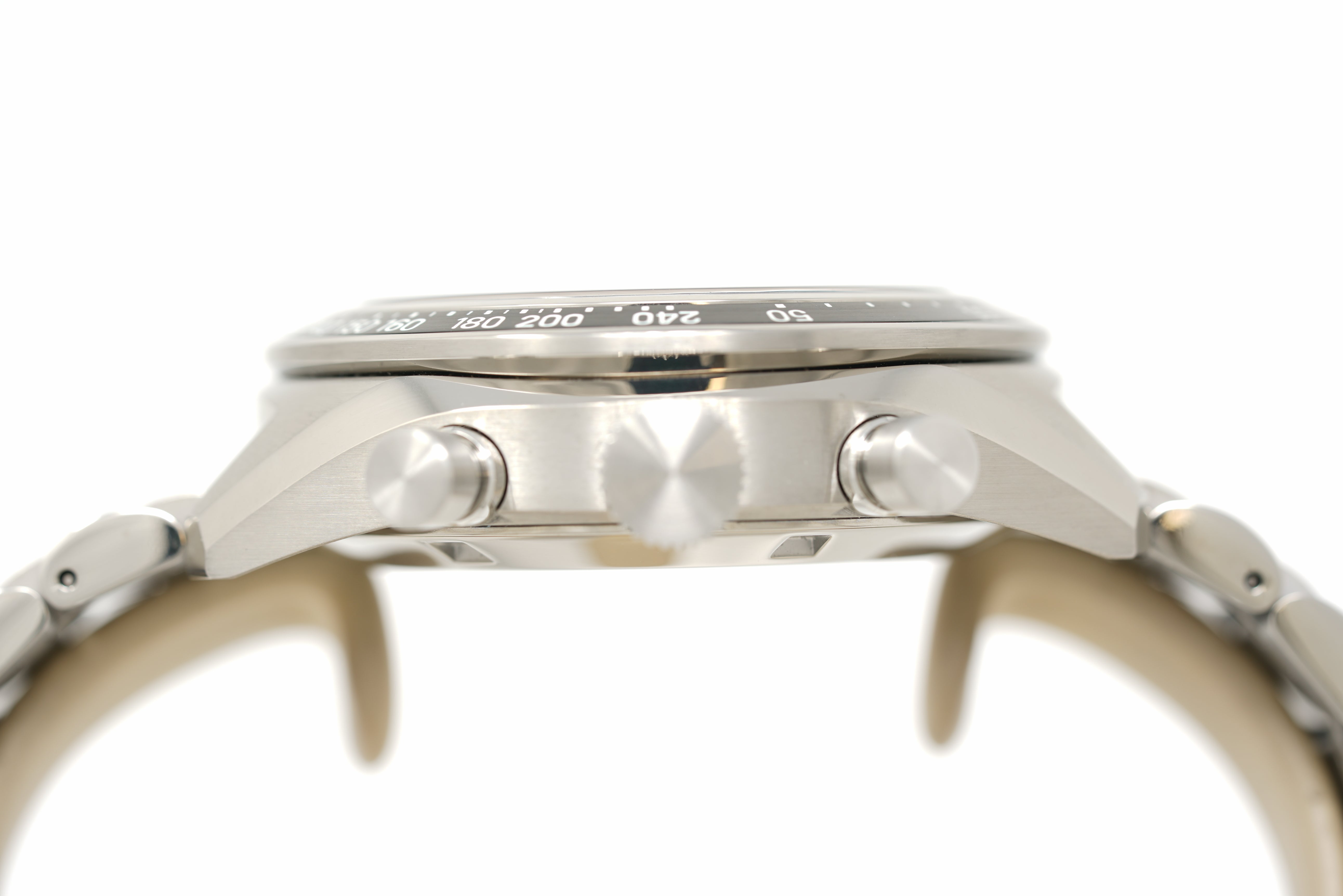 This pre-owned watch is in 94% condition due to faint marks on the sides and back of the case. The bracelet is in 90% condition due to slight marks on a few of the links and clasp. Originally purchased in December 2025, this watch comes with its inner and outer box, digital instruction manual, warranty card, hangtag, and the one-year Topper Pre-Owned Select warranty.