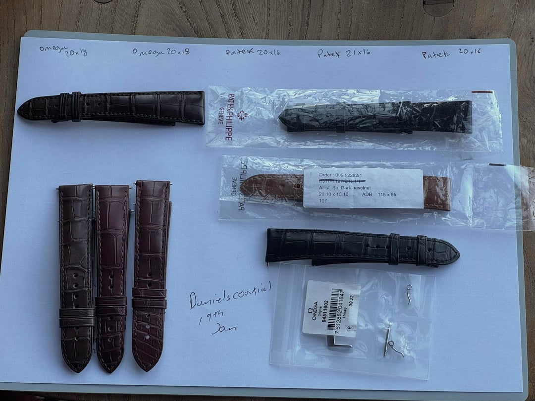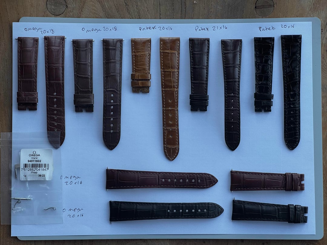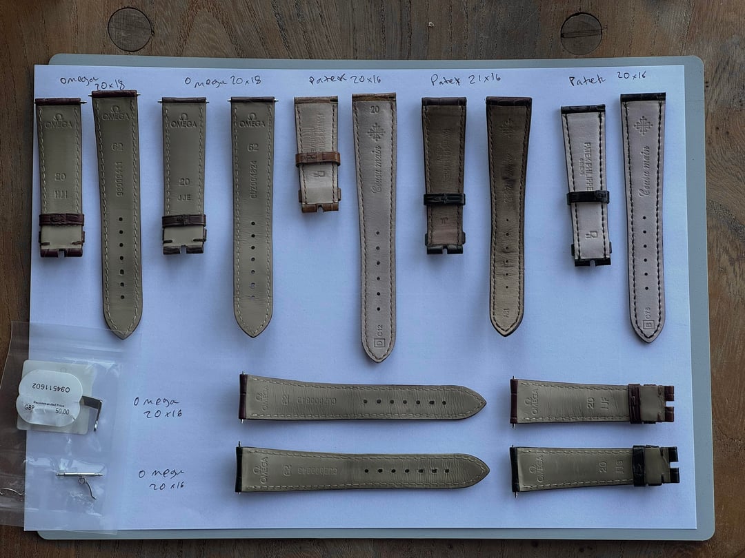 Have amassed a selection of straps over the years that won’t be used. £100 each for the omega straps £40 for the 16mm omega buckle £100 for the 21x16 Patek strap £150 for the cognac Patek strap £175 for the black Patek strap (brand new unworn)