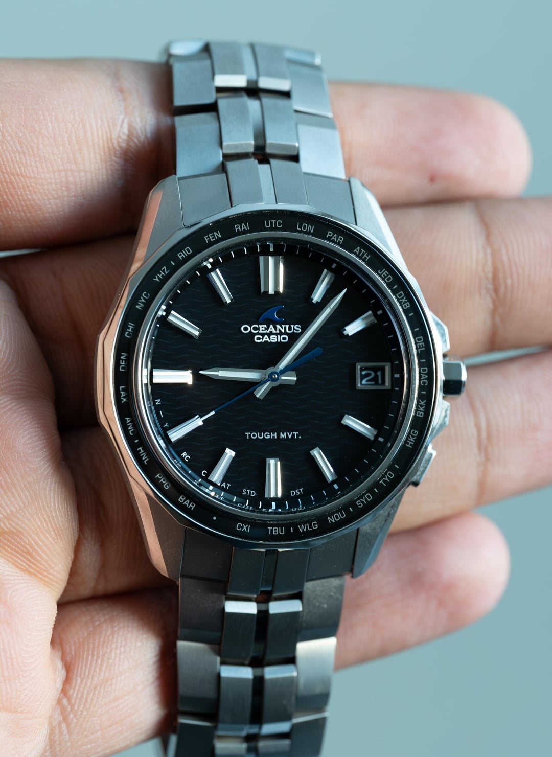 Up for sale today is my Casio Oceanus Manta OCW-S400-1AJF with a black dial. Best everyday watch with a titanium case & bracelet, solar movement, jumping hour with time zone, bluetooth, radio to name a few. Extremely comfortable case that you can easily wear all day. Dial is interesting and very dynamic depending on the light. It can look glossy black or if the light hits it right, you can see some ocean waves like texture. Watch is in very good if not excellent condition. I purchased it from C24 last year. There are no scratches or dents at all anywhere. bracelet is sized for my 7inch wrist and watch comes with extra links No trades please. I am selling a lot of my watches Timestamp and Album: [https://imgur.com/a/casio-oceanus-yYPsZRP](https://imgur.com/a/casio-oceanus-yYPsZRP) Price: 695 including insured shipping within the US Payment: Paypal F&F Shipping: Insured USPS/UPS/FEDEX within CONUS I am open to FaceTime calls to show the watch