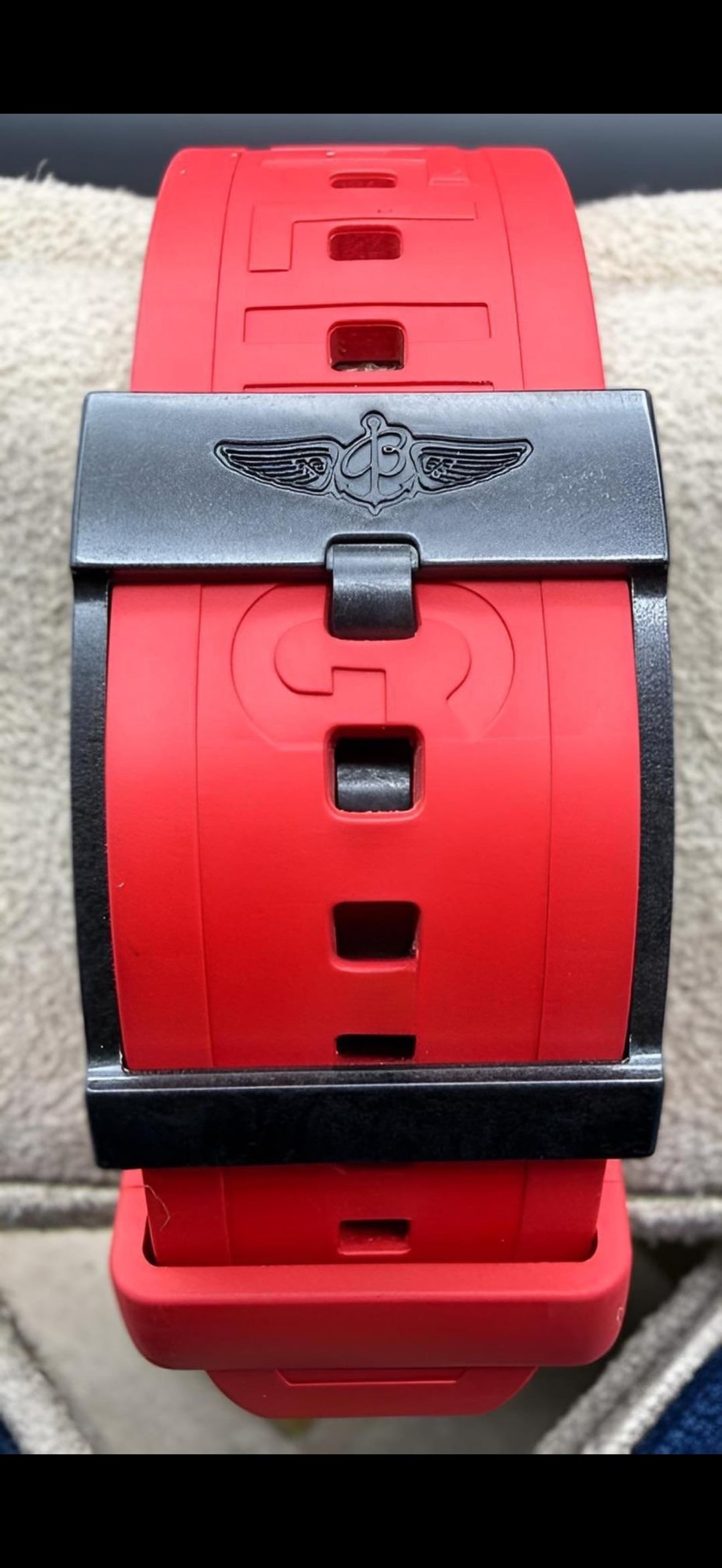 Consider yourself a pro? Let your watch do the talking for you… This Breitling X82310D91B1S1 is the Endurance Pro model in red. Featuring a lightweight, Breitlight case (44mm) Sporting a beautiful black dial with red accents, a red rubber strap, and a SuperQuartz movement (Caliber 82) Equipped with chronograph and date functions and water-resistant to 100m. Key features include: -Bidirectional compass bezel -Sapphire crystal -Durable, sporty design. -Comfortable, weightless feel This comes as watch, warranty card, box and travel case. DEMAND wrist presence! Only $1,999