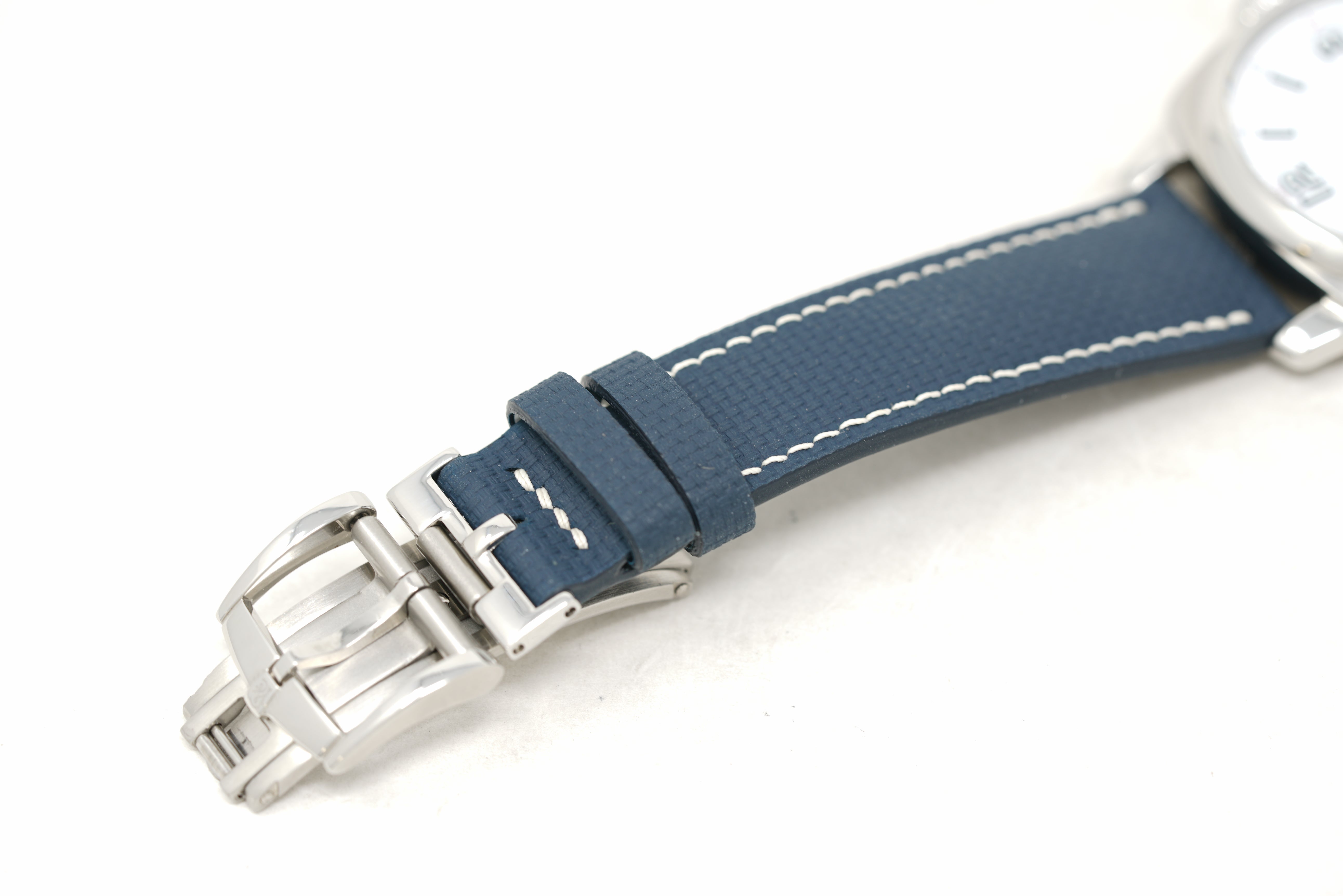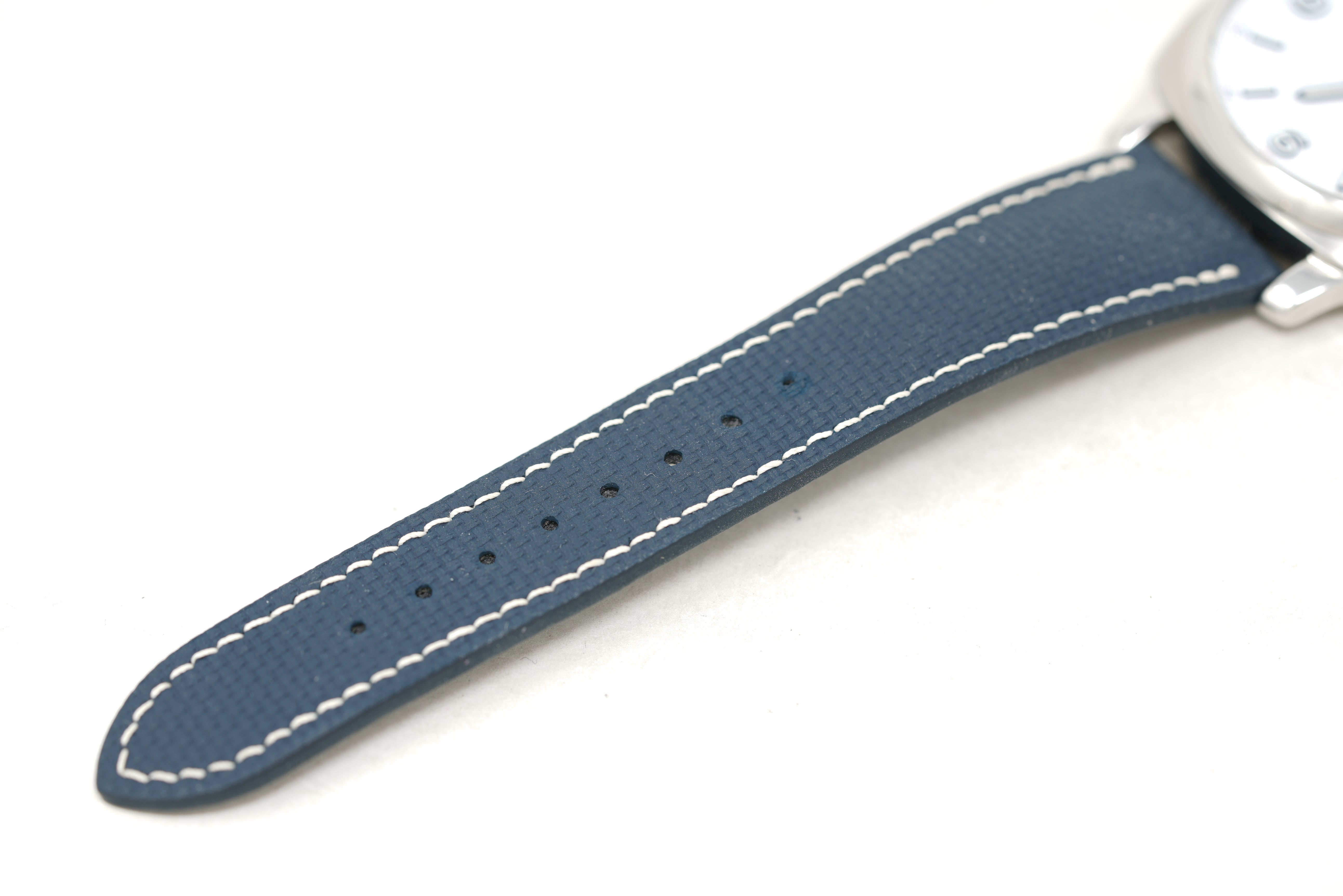 Limited to 100 pieces, this pre-owned watch is in 87% condition due to slight marks on the lugs, bezel, and throughout the case. The strap is in 89% condition due to slight wear, marks on the clasp, and an extra hole. Also included is an OEM strap in 93% condition due to slight wear and creasing, and an aftermarket strap in 93% condition due to slight wear and creasing. Originally purchased in November 2025, this watch comes with its inner and outer box, instruction manual, warranty card, limited edition certificate, and the one-year Topper Pre-Owned Select warranty.