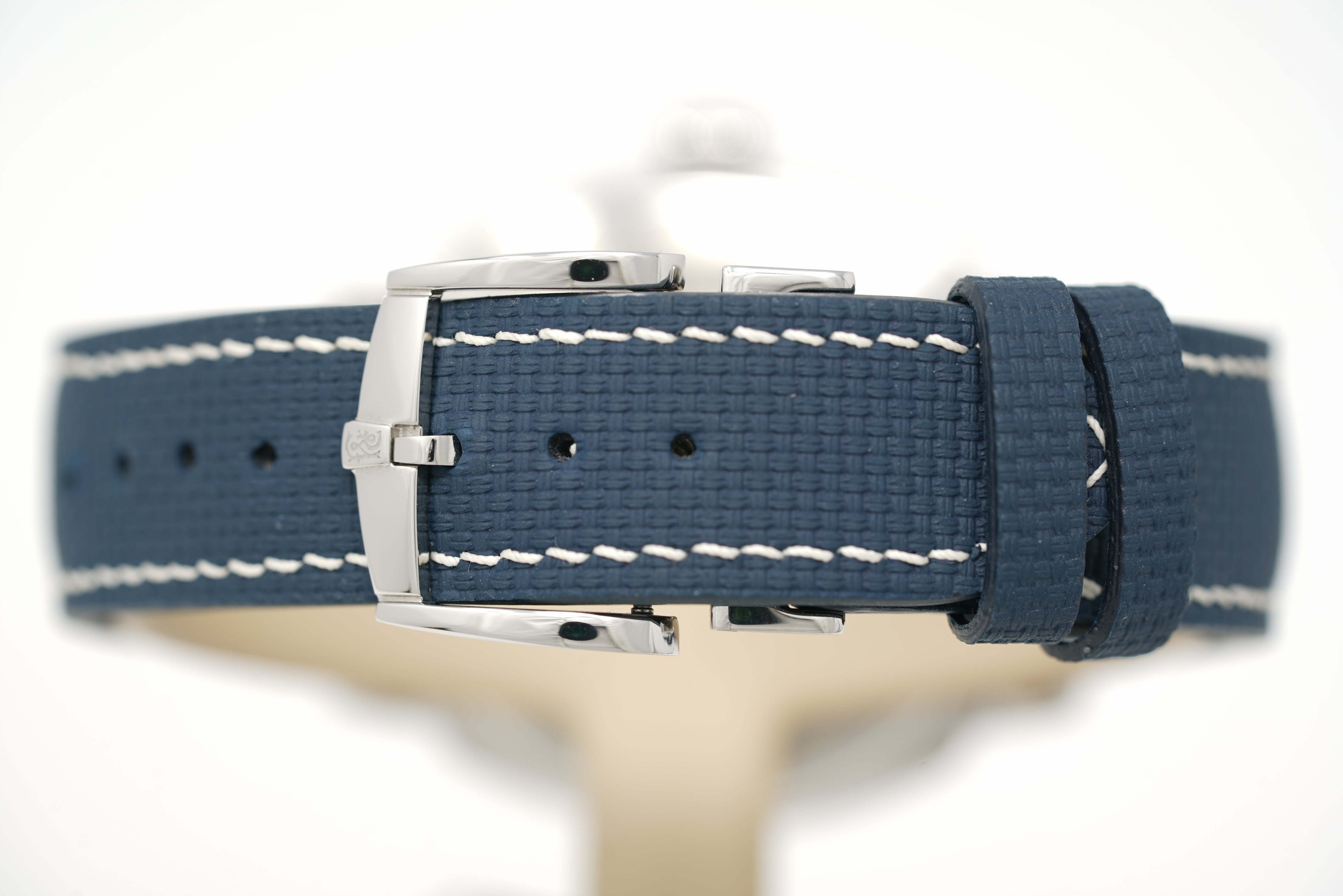 Strap/Bracelet: Blue Textile Rubber Strap, Orange Textile NATO Strap & Blue Leather Strap
