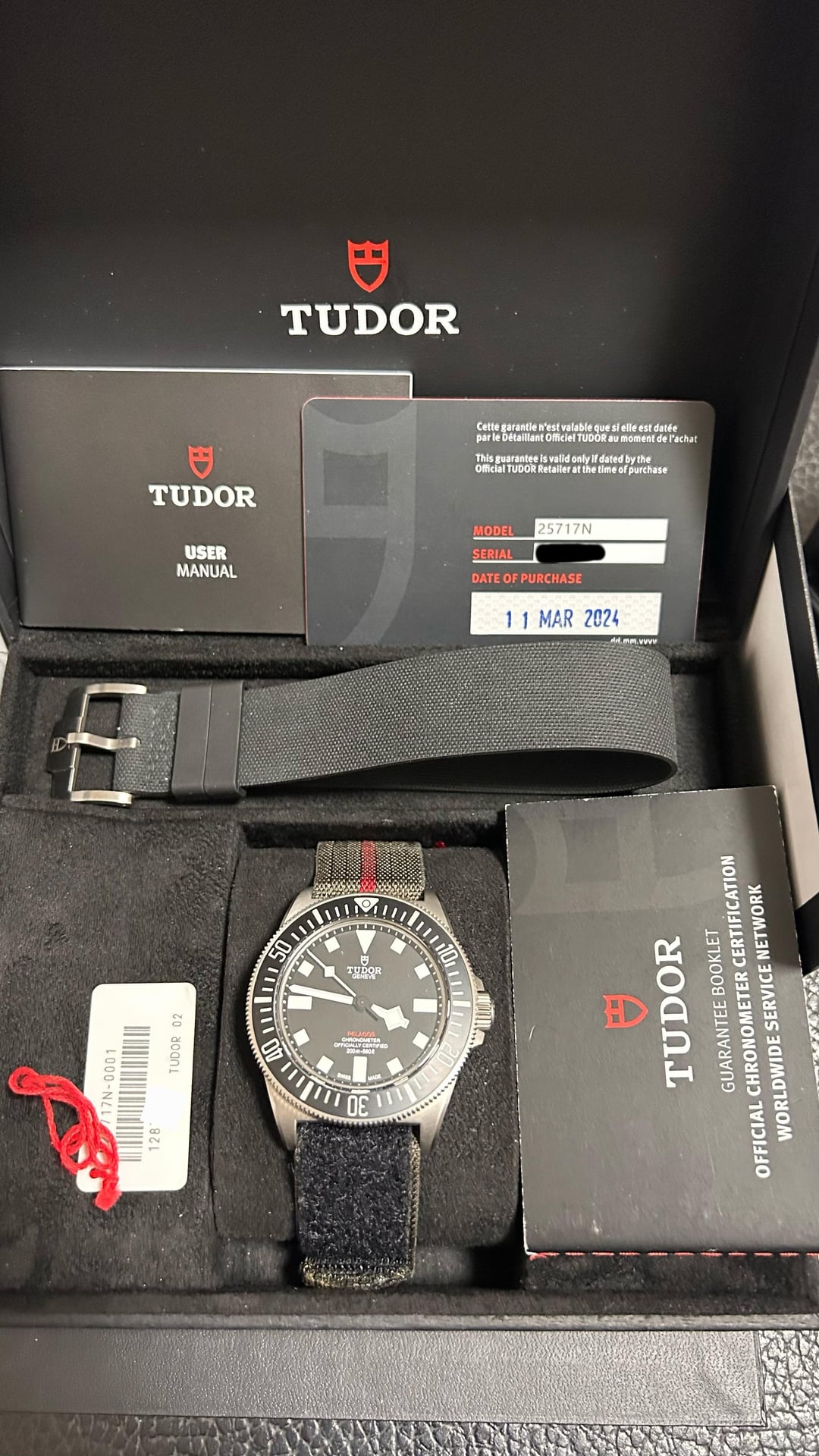 Up for sale is a Tudor Pelagos FXD 25717N 42mm 2024.3 Full Set. The watch is under warranty (03/2024 - 03/2029). It comes with two OEM Tudor straps, a warranty card dated 2024.3, Tudor inner and outer boxes, and Tudor booklets. ***The authenticity is 100% guaranteed – the watch has been thoroughly inspected and authenticated prior to listing. Feel free to check out my website*** **Tonneau Atelier** ***in my profile.*** Price: $3199. Payment via PayPal or Wise is preferred. No trades please! Watch is in Chongqing (known as the Cyberpunk City), China. I will pay the customs duties or tariffs for buyers located in United States. Watches will be shipped via FedEx, which delivers to your doorstep in just four days. Worldwide shipping and I am willing to ship this watch anywhere with buyers paying for the shipping. If you really love this watch and pay fast, I will offer free shipping! Feel free to ask for any custom timestamps or videos, I am happy to send them. Please don't hesitate to ask me any questions, thank you! Timestamp: [https://imgur.com/a/8dWLdLq](https://imgur.com/a/8dWLdLq)