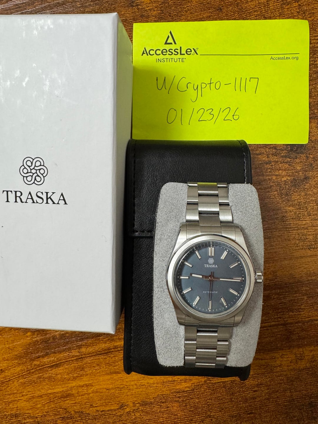 Up for sale is my Traska Commuter 36mm in excellent condition. This is the steel blue colorway which can look greyish depending on the lighting. Purchased in early 2025, this version includes the on-the-fly bracelet adjustment update. Watch is running only +8 sec/day. All box, papers, and bracelet links are included. Looking for $499 for this piece shipped to CONUS. PayPal preferred. Thanks for looking, and as always, feel free to ask any questions you may have!