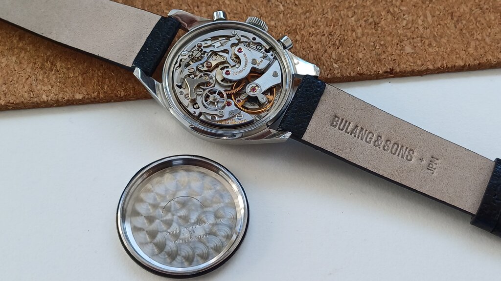 The Valjoux 72 movement has recently been checked by my watchmaker, runs strong and looks absolutely clean.