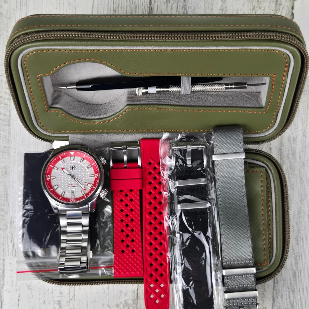 Thumbnail [WTS] Second Hour Giant Stride, 316L SS with hardened coating 1,200 HV 42mm Sellita SW200 movement, sapphire crystal, spring bar tool, screwdriver, 2 NATO straps, rubber strap, and bracelet.  Nice Second Hour two watch leather case.  $525 shipped CONUS. 6