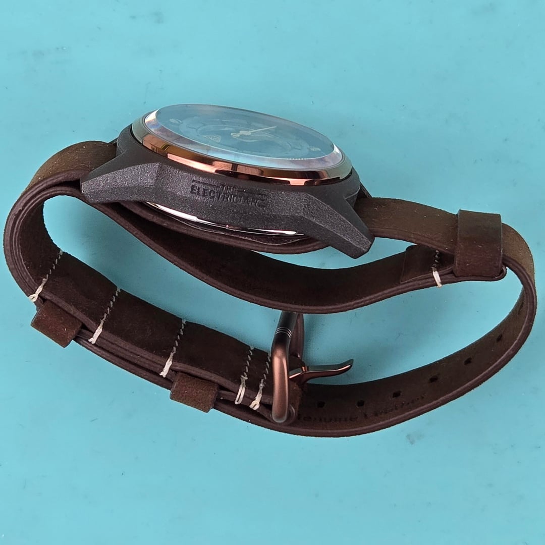 [WTS] Electricianz Moka Z 42mm electric module movement, leather one piece strap. SS case with Nylon outer case, box included. $200 shipped CONUS.
