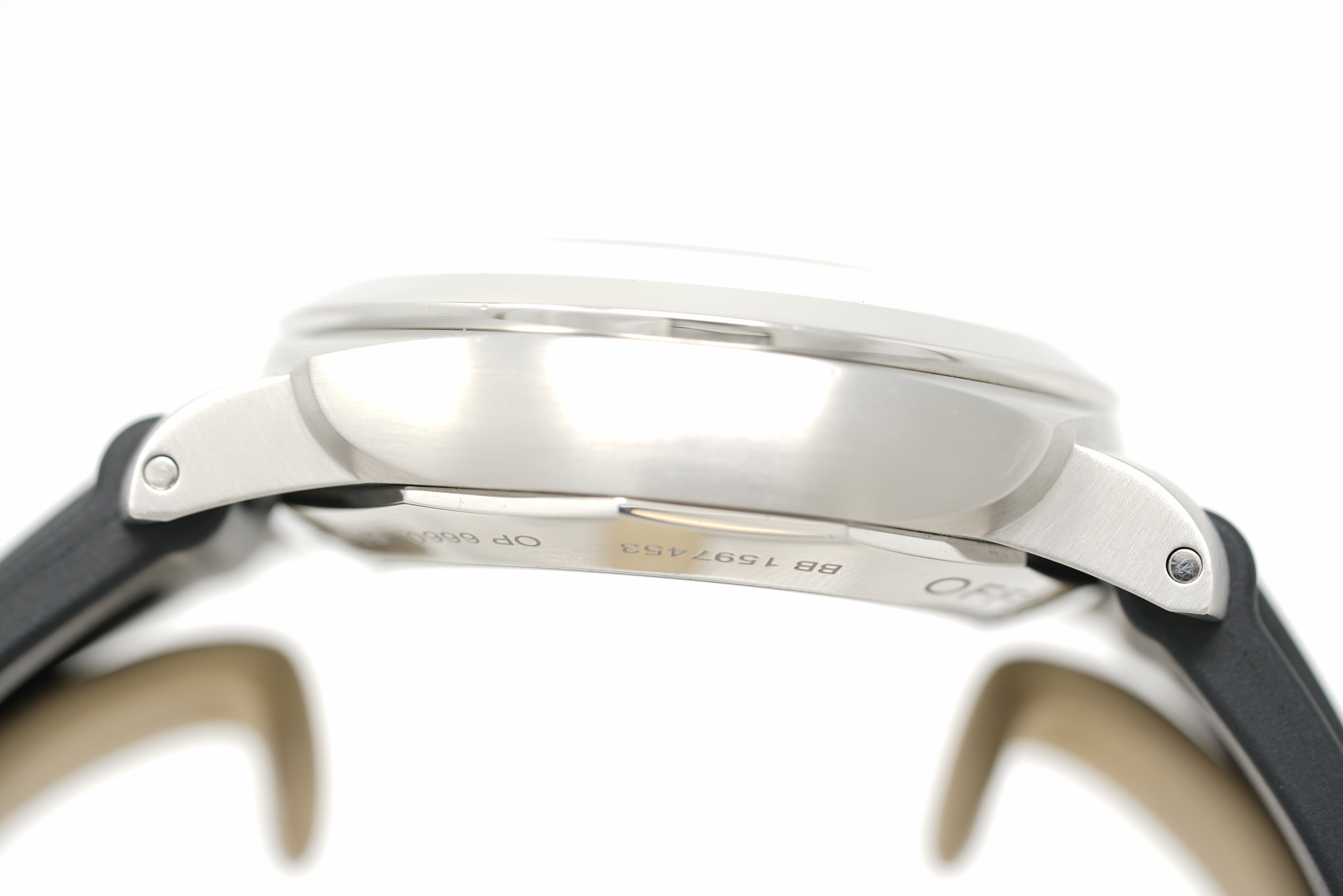 This pre-owned watch is in 85% condition due to slight marks on the lugs, bezel, and throughout the case. The replacement OEM strap is in 93% condition due to slight wear, creasing, and a missing keeper. Also included is an aftermarket strap in 95% condition due to minor wear and creasing. This watch comes with its triple box, instruction manual, and the one-year Topper Pre-Owned Select warranty.
