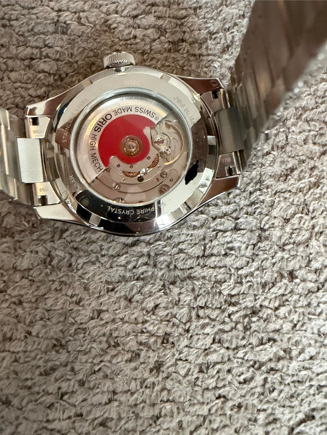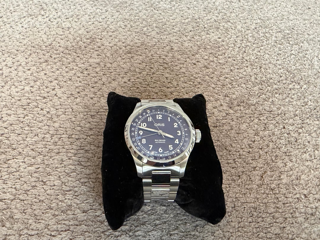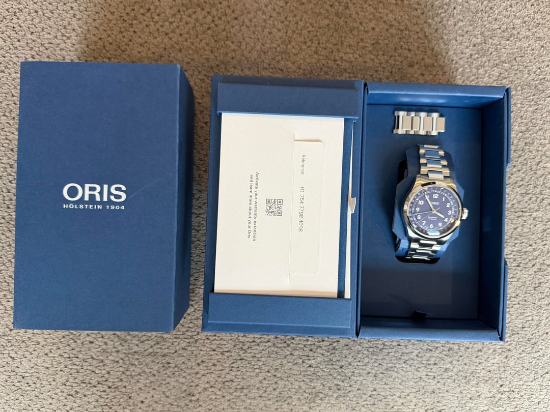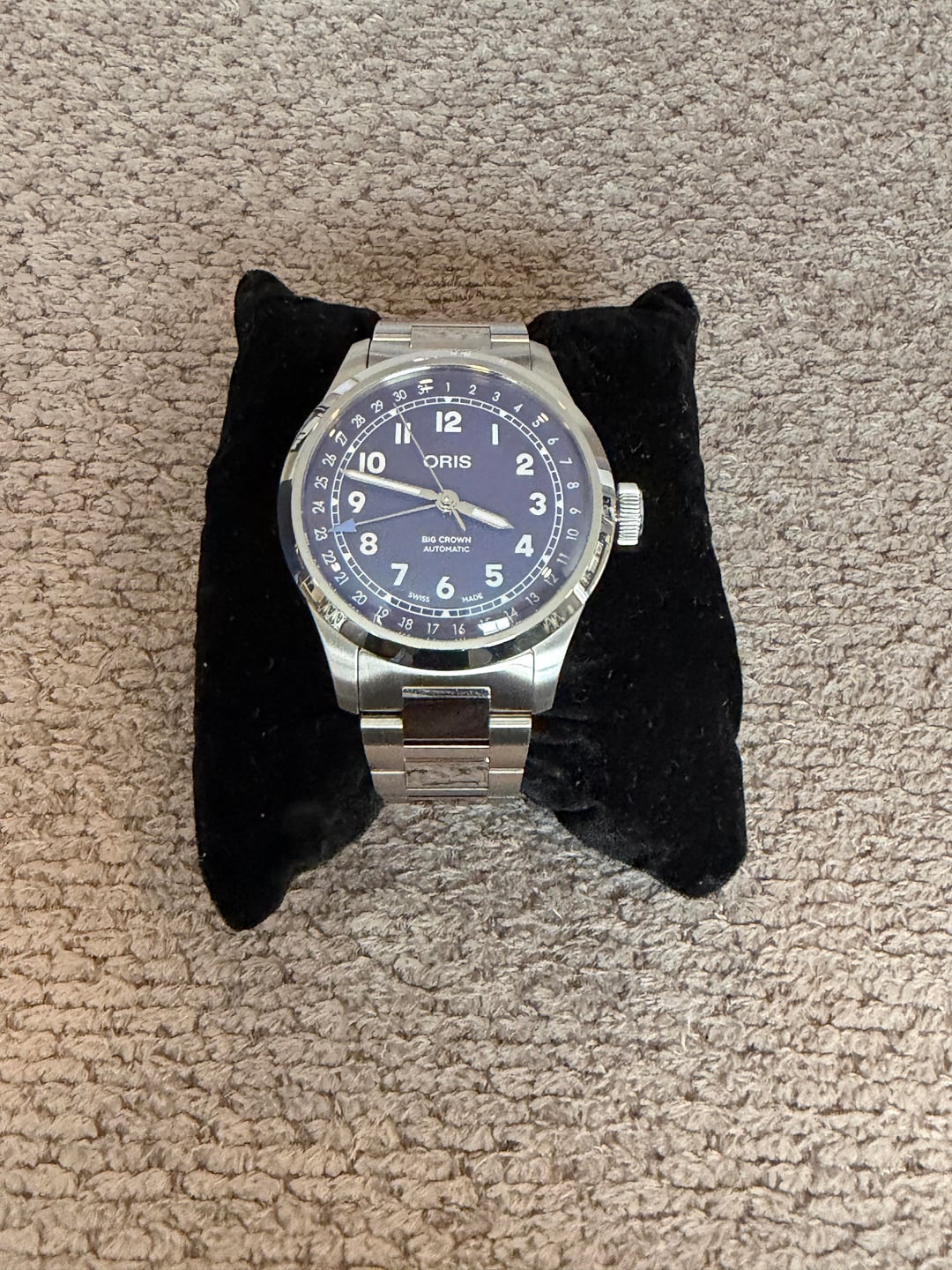 Hi all, For sale is The Oris Men's Big Crown Pointer Date Lilac/Purple Dial 40mm Full Set With Box. This is the new gen model. Looks fantastic and is a beautiful piece but need to sell this to fund my purchase of the speedy. Watch was purchased in July of 2025, and has an active warranty through July 14, 2028 from Oris. It’s in excellent condition, has been worn on a strap mostly (strap does NOT come with the watch) Comes with OEM bracelet and additional links, original box and has an MSRP of $2,400 from an AD. I can FaceTime/video call to show you the watch and answer questions. I know it’ll be my first sale but I have great reviews on other platforms and I’d be happy to share those with you. $1,500 Plus shipping (will ship next day to you and insured with required signature) Thank you!
