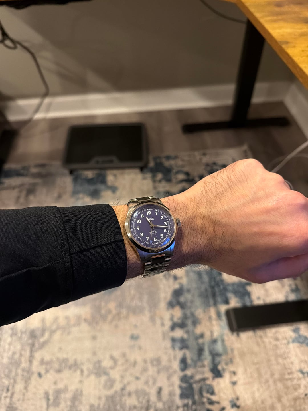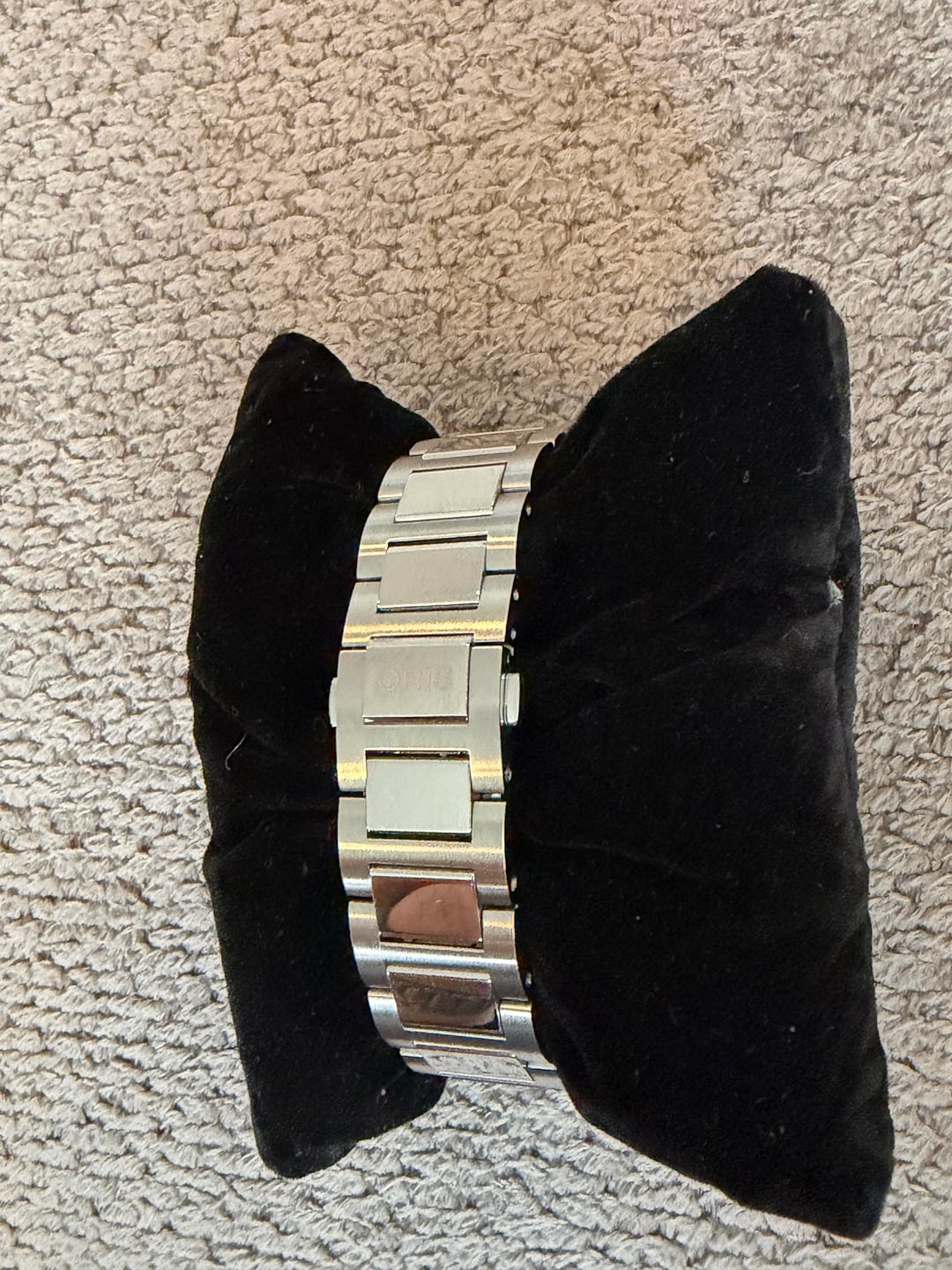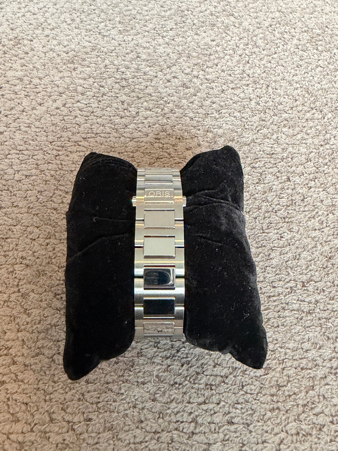 Hi all, For sale is The Oris Men's Big Crown Pointer Date Lilac/Purple Dial 40mm Full Set With Box. This is the new gen model. Looks fantastic and is a beautiful piece but need to sell this to fund my purchase of the speedy. Watch was purchased in July of 2025, and has an active warranty through July 14, 2028 from Oris. It’s in excellent condition, has been worn on a strap mostly (strap does NOT come with the watch) Comes with OEM bracelet and additional links, original box and has an MSRP of $2,400 from an AD. I can FaceTime/video call to show you the watch and answer questions. I know it’ll be my first sale but I have great reviews on other platforms and I’d be happy to share those with you. $1,500 Plus shipping (will ship next day to you and insured with required signature) Thank you!