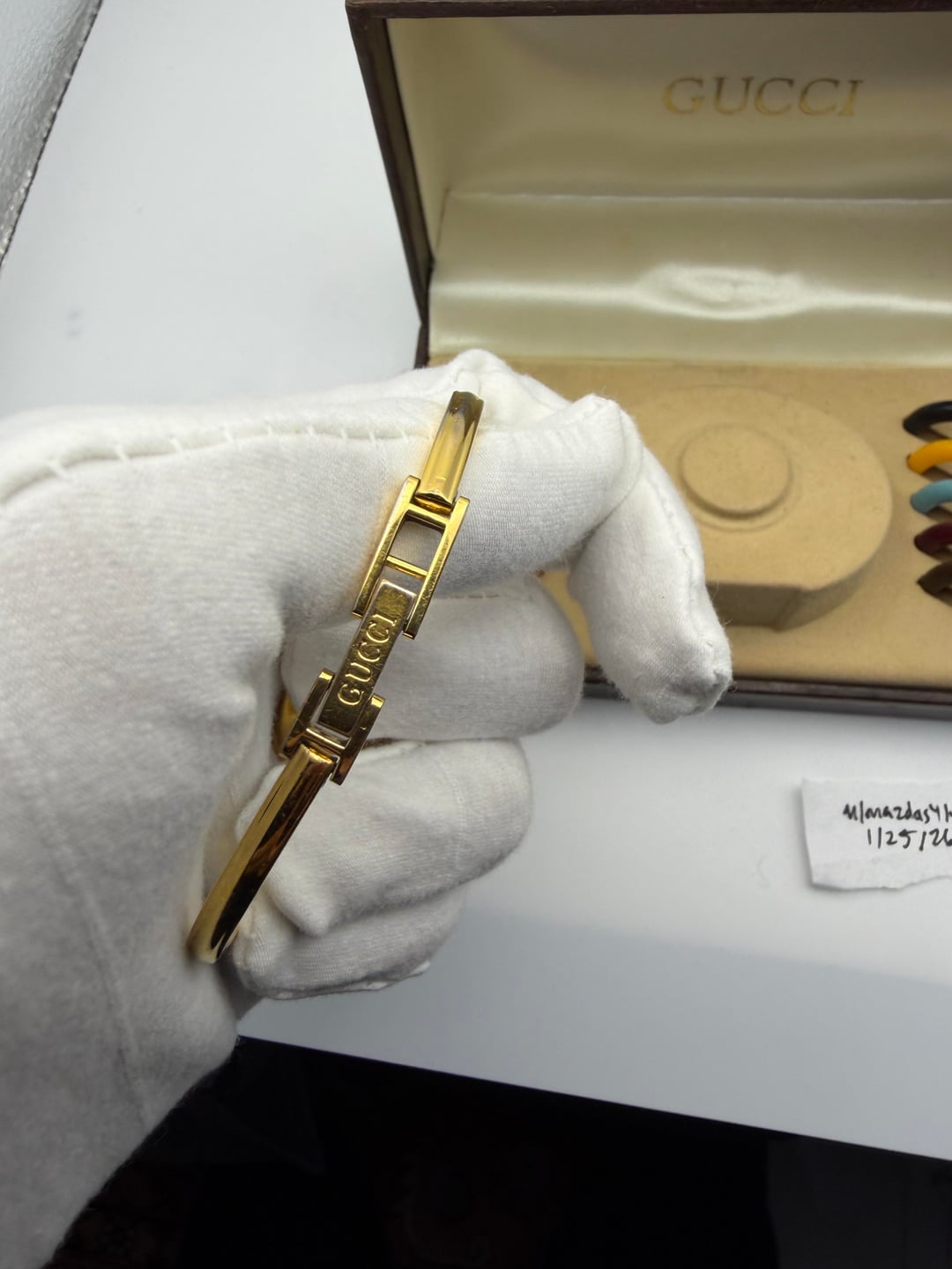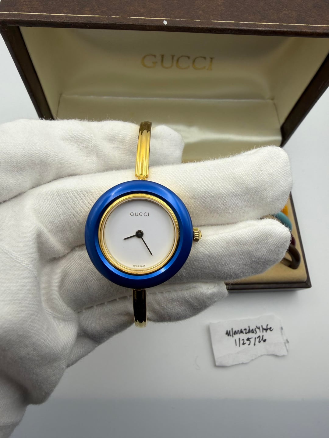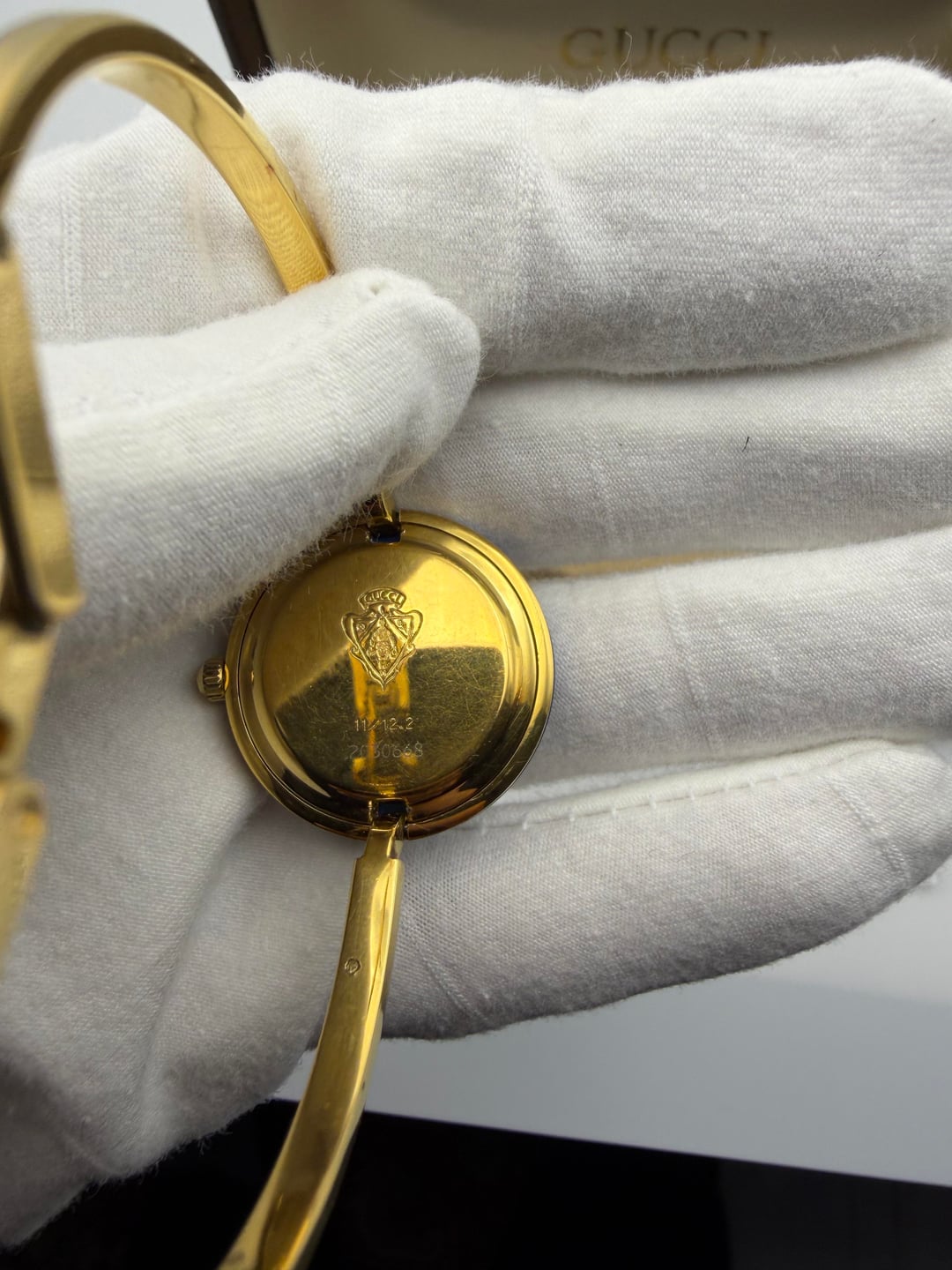 ![[WTS/WTT] Vintage Gucci 11/12.2 (1100L) Gold Bangle Watch w/ Interchangeable Bezels in Original 10 Slot Box Restored 5](https://cdn-cf.watchpatrol.net/600x600/img/full/3068fd9d7bc76c7b9d0cf990f82943a3f8ea0457.jpg)