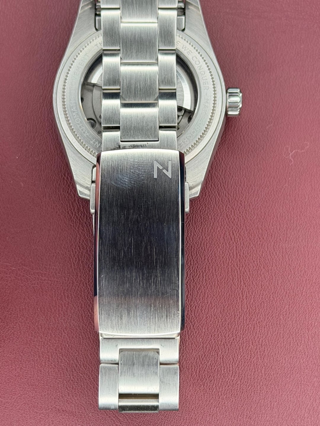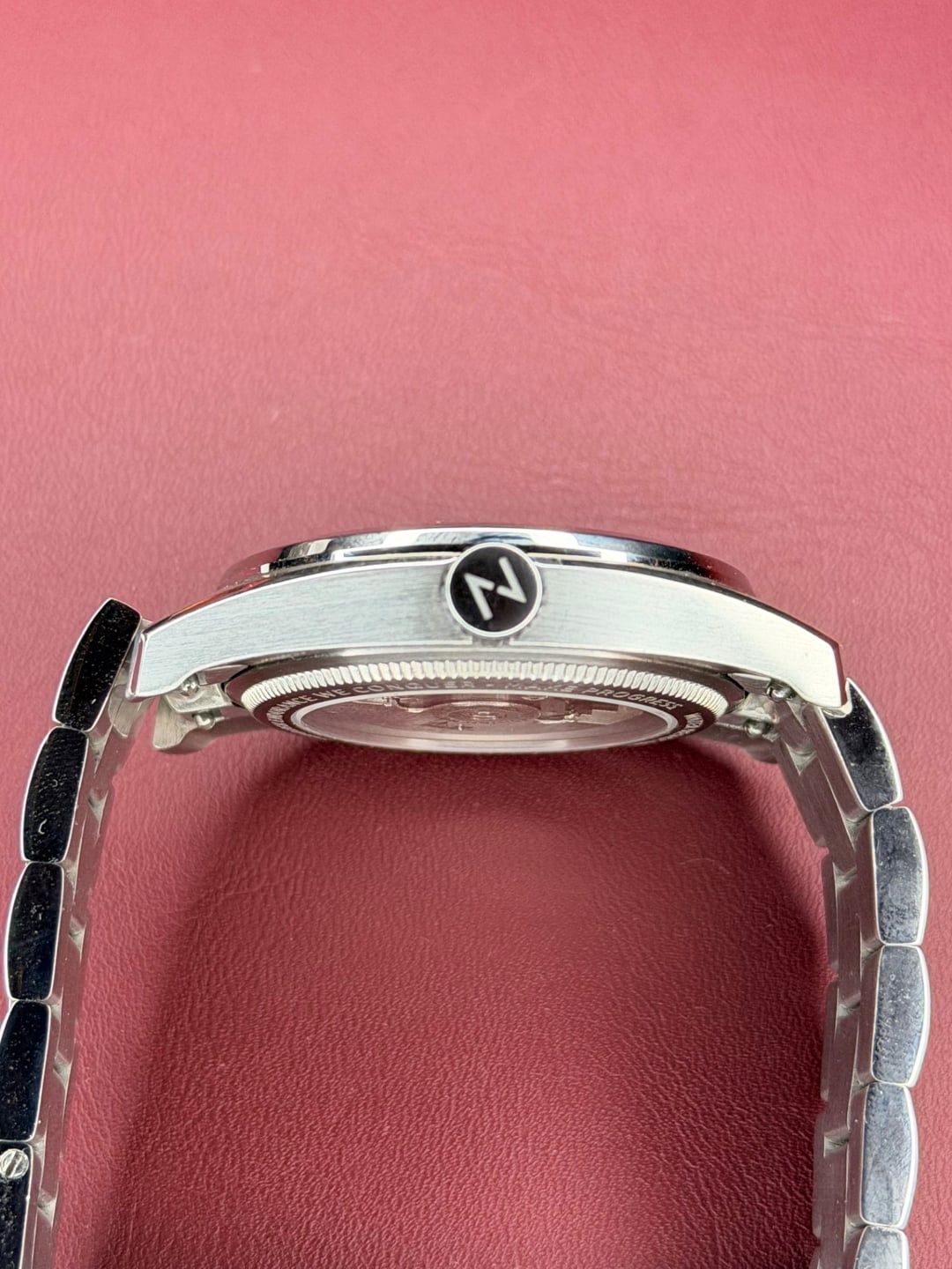 Premium Irish microbrand with a lifetime warranty. Excellent condition with only some minor desk rash on the clasp. Comes with Full links, papers, travel pouch and screwdriver. Feel free to message me with any questions. Can send a video or do a facetime. Case 316L stainless steel, fine-brushed Dimensions 39mm diameter, 11mm thickness, 47.5mm lug-to-lug, 20mm lug width Crystal Flat sapphire crystal with anti-reflective coating Bezel 316L stainless steel, polished Lume Blue SuperLuminova BGW9 Bracelet Three-link tapered 20mm to 16mm, MicroGlide adjustment, screw-in links, quick-release spring bars Movement Sellita SW200-1 automatic Water resistance 100m/330ft