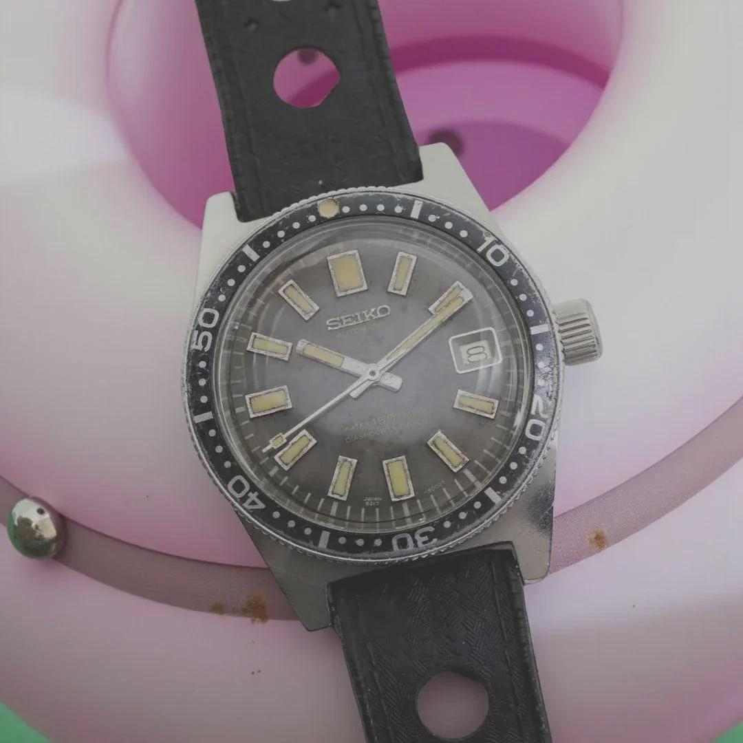 Released in 1965 the “62MAS” (auto\[MA\]tic \[S\]elfdater) is the first professional Seiko diver's watch. Originally released with a smaller crown (ref. 6217-8000) this was discontinued after two months and replaced with (ref. 6217-8001) which has a larger crown. Brand: Seiko Model: 62MAS "Big Crown" Reference: 6217-8001 Case: 37mm Strap: Black tropic rubber strap Box & papers: No Location: Los Angeles Price: $4,750 or make me an offer :) Web/IG: [keepiece.co](http://keepiece.co/) Pictures/Timestamp: [https://imgur.com/a/qLIACle](https://imgur.com/a/qLIACle) CONDITION & SERVICING \-Markers and hands are matching. \-The dial has faded to a light grey. \-The edges of the case remain sharp, with the bezel and crown teeth offering lots of grip. \-Caseback is in excellent condition with engraving prominent. \-Watch was recently serviced by our watchmaker and is running to spec.