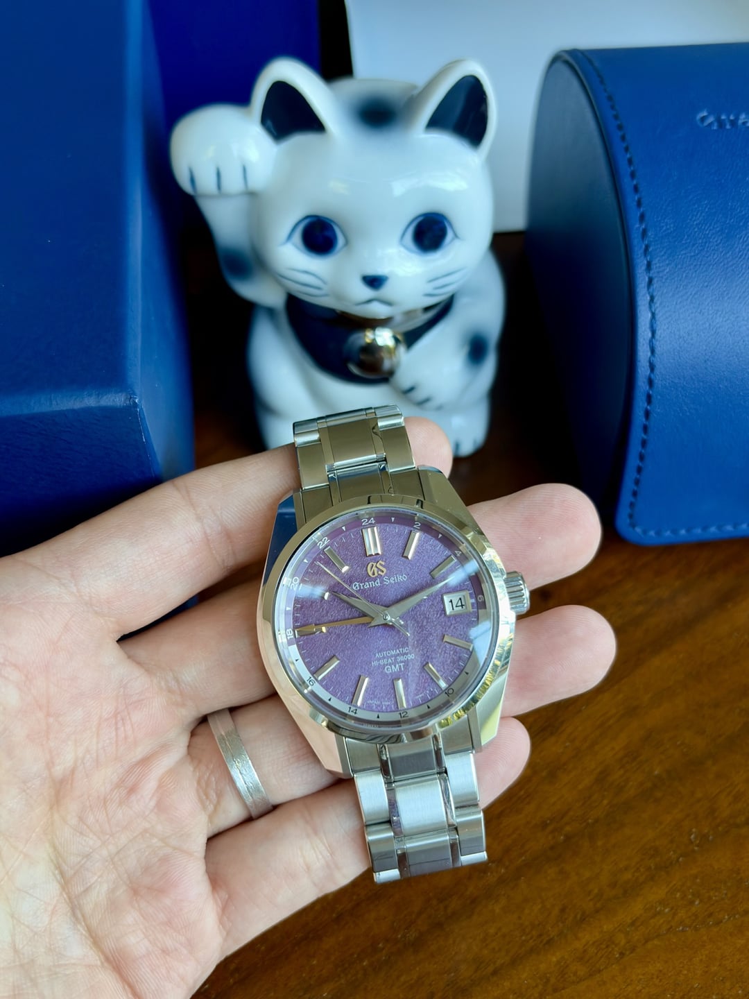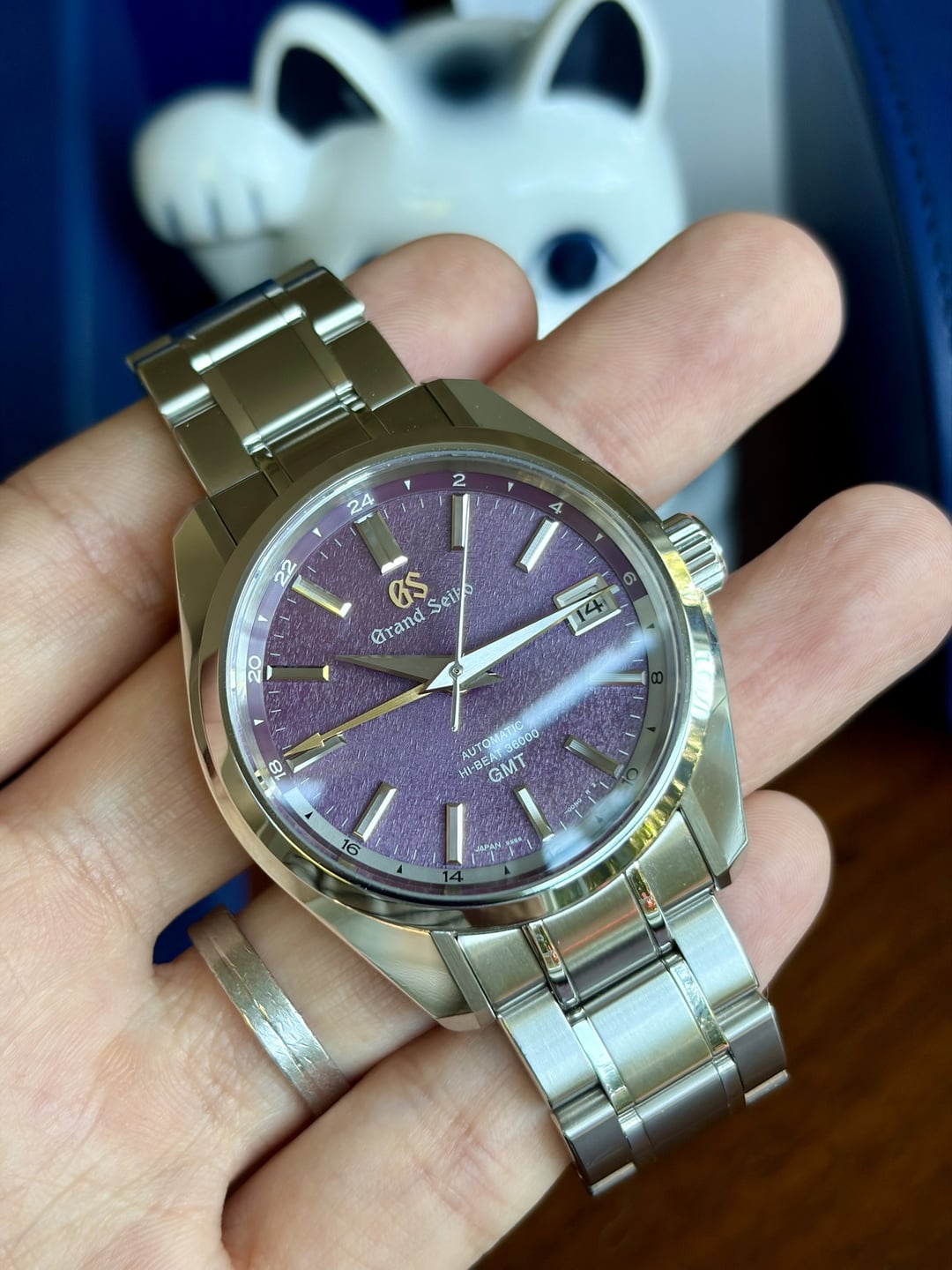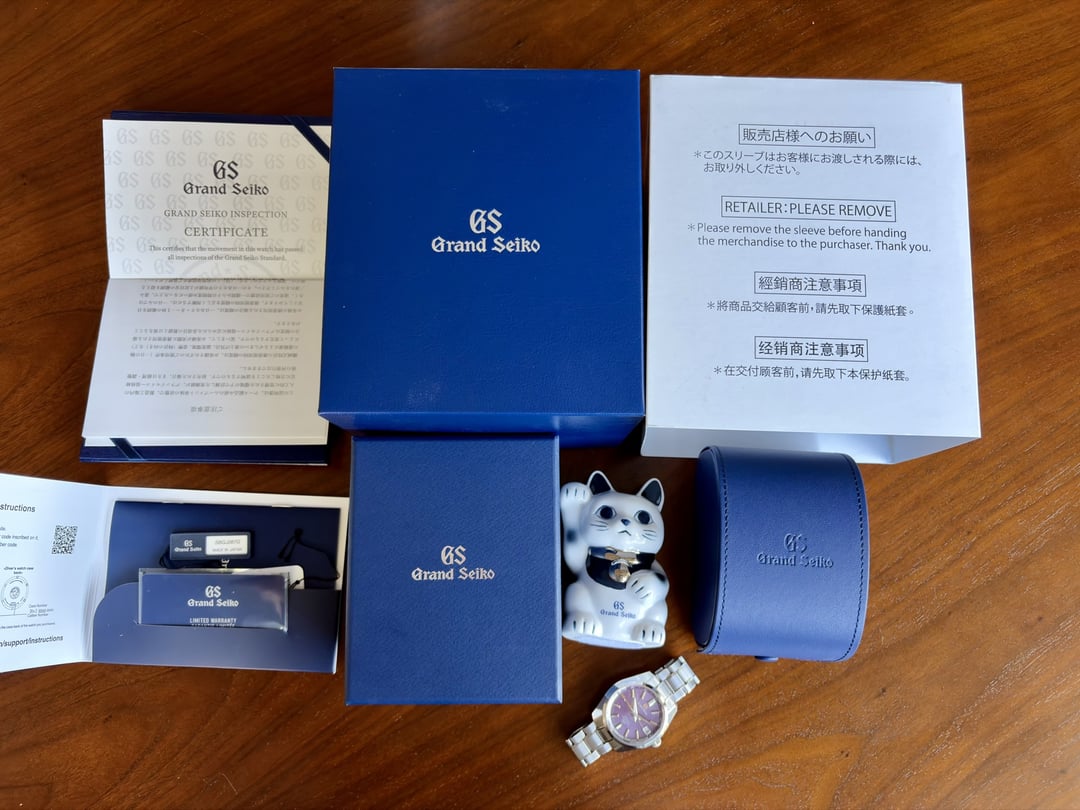 Hi All, Looking to sell my Grand Seiko GMT SBGJ287 Limited Edition 1 of 140 pieces. This was a special edition for a specific retailer (Thong Sia) in the Hong Kong and Macau markets.  The SBGJ287 “Night Sakura” has a beautiful / mesmerizing purple dial and golden colored GMT hand and GS logo. The Ever-Brilliant Steel case measures 40 x 14 x 46.2mm and houses a 9S86 Hi-Beat calibre.  Amazing watch with a special purple dial and was worn only a handful of times. Watch is in great condition other than a scratch on the bracelet (see video in Imgur link). I’m sure it could easily be polished out but would personally leave as is. **Price:** **$8,000 shipped and insured in CONUS via bank wire.** I have references from here and on other platforms so you can deal with confidence. Any questions, please feel free to msg me **Model:** SBGJ287 **Condition:** Great condition, only worn a few times **Sale Includes:** An amazing complete set with all the goodies. Watch, all inner/outer boxes, hang tags, warranty cards, books, manuals and **BONUS** Grand Seiko good luck charm cat souvenir that included with watch purchased direct from Thong Sia (retailer) Pictures: [https://imgur.com/a/wts-grand-seiko-sbgj287-night-sakura-limited-edition-1-of-140-pieces-se-asia-ir9qFek](https://imgur.com/a/wts-grand-seiko-sbgj287-night-sakura-limited-edition-1-of-140-pieces-se-asia-ir9qFek) Video: [https://imgur.com/f1oQI5J](https://imgur.com/f1oQI5J) Timestamp: [https://i.imgur.com/GYFOAfl.jpeg](https://i.imgur.com/GYFOAfl.jpeg)