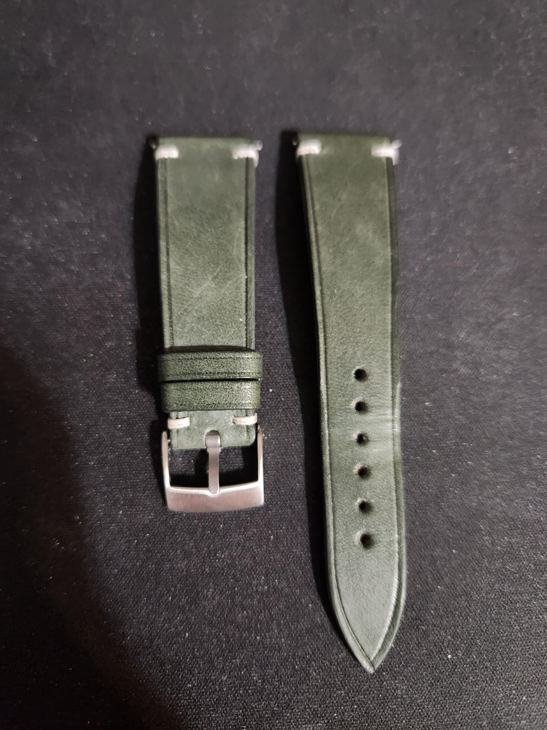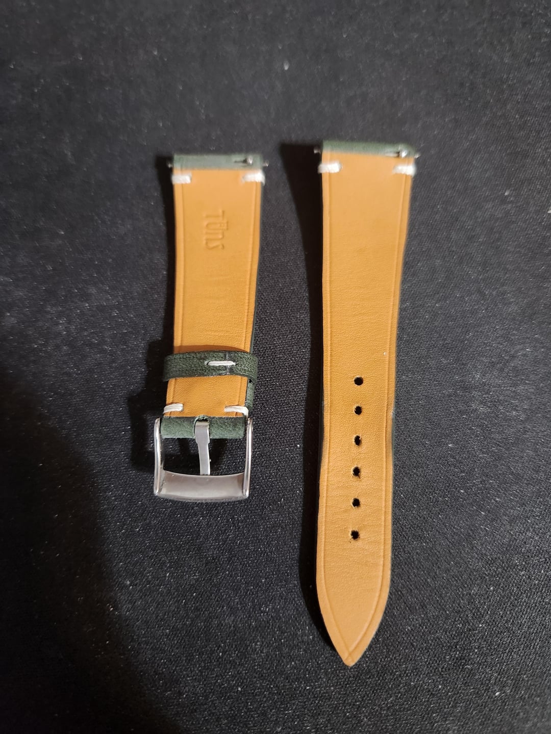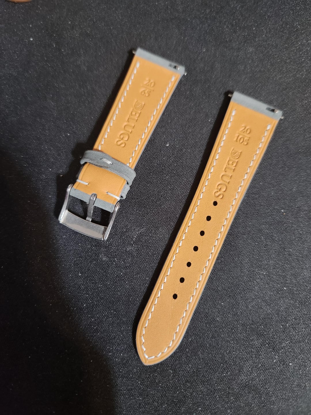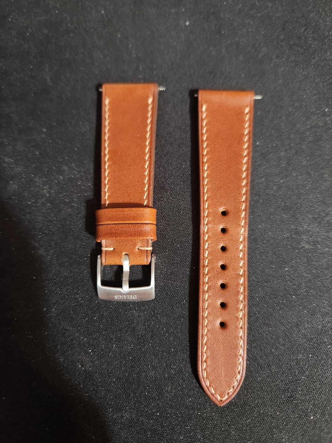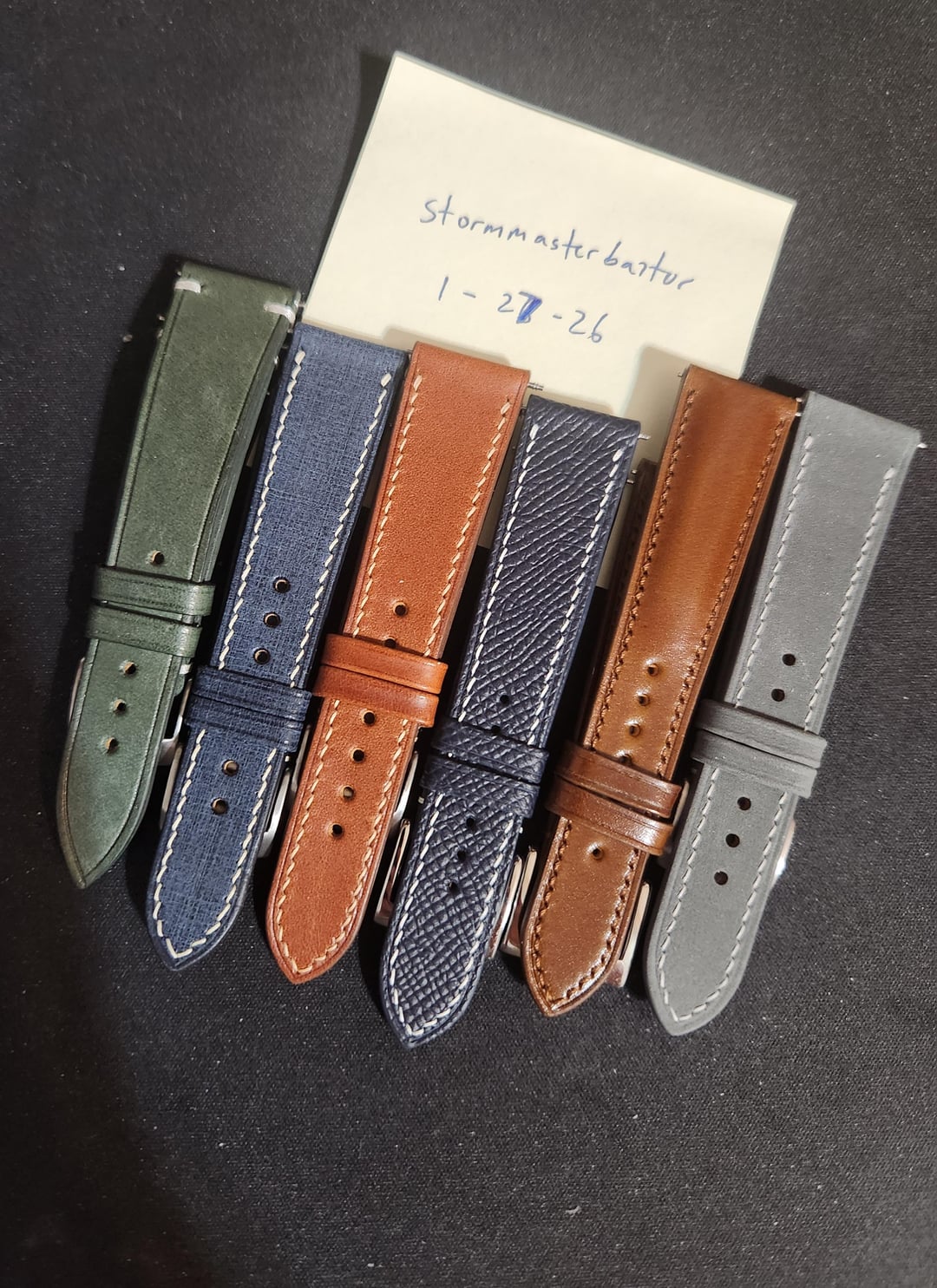 ive noticed that i havent worn my watches on straps in awhile having only worn bracelets recently so im selling 6 short length straps together as a bundle, all are new except for the Tuns Green strap which has been worn 5 times. Straps are as following 1x Delugs Light Grey Newbuck leather slim strap 20mm/16mm lug width, 105mm/65mm length NEW 1x Delugs Denim Babele slim strap 20mm/16mm lug width, 105mm/65mm length NEW 1x Delugs Chestnut Buttero slim strap 20mm/16mm lug width, 105mm/65mm length NEW 1x Made to Order Artisan Straps Australia Navy Epson leather strap 19mm/16mm lug width, 105mm/70mm length NEW 1x Made to Order Artisan Straps Australia Cognac Shell Cordovan (Padded) leather strap 19mm/16mm lug width, 105mm/70mm length NEW 1x Tuns Maya Pine Green leather strap 20mm/16mm lug width, 105/65mm length Worn 5 times Looking for $299 shipped conus for all 6 of these straps via zelle, ty for looking