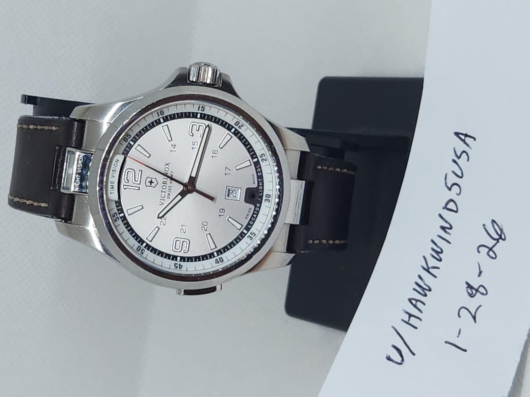 Selling my Victorinox Night Vision mdl#241570. Quartz movement, sapphire crystal, leather strap. Case size is 42mm, band size 21mm. $185 shipped. I accept Paypal F&F. If you desire G&S please add 4% ($7.40). CONUSA only. Chat 1st
