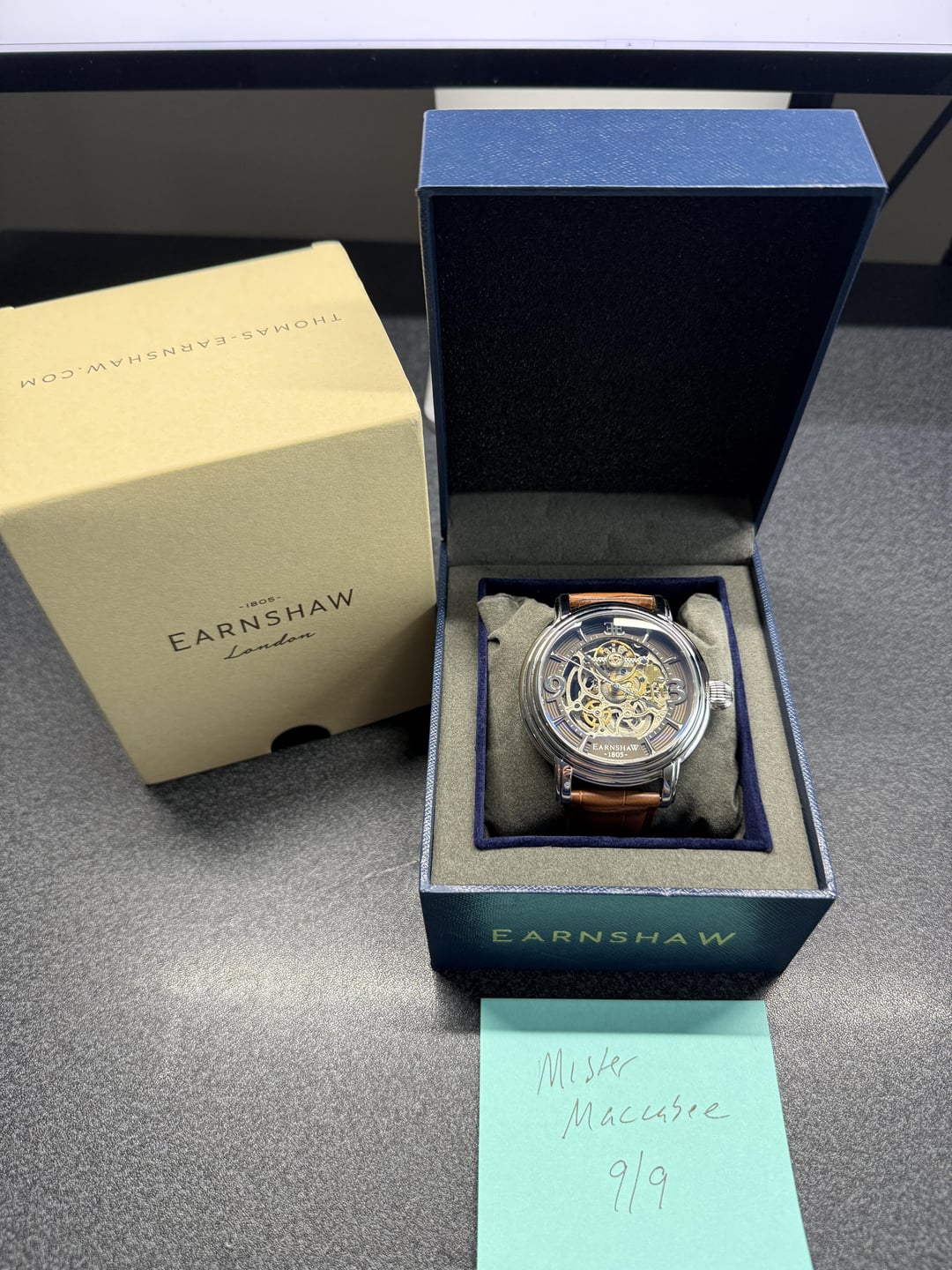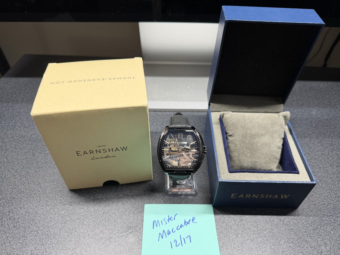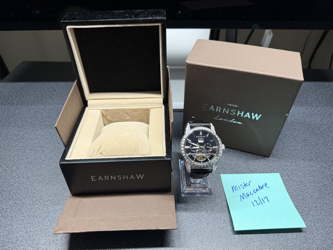 Hey folks Here is a package of 4 Thomas Earnshaw watches. All in excellent to almost new-like condition. All but the Aventurine/MOP watch were purchased new by me so that’s basically the condition they are all in, like new, barely worn if at all, some possible crease in leather band from trying then on but that’s the extent of wear. Aventurine/MOP purchased on eBay so I am not the original owner. However still in great condition no major issues that I can see. Check out the pics Ive posted. Combined this group is over $1000 new retail. So I think I’ve posted this at 50% off which I think is a pretty good steal :). All come with box, full kit I received them with. **Earnshaw Lapidary Swiss Quartz Aventurine and Mother of Pearl** Beautiful combo aventurine/mother of pearl dial from Thomas Earnshaw. Now sold out. Was a limited edition run a while back. Hard to find. 44mm but short lugs. 50m water resistance. Comes on a black leather strap with Earnshaw buckle included. **Earnshaw Nawab Midnight Jewel Grand Date Calendar Open Heart Automatic Limited Edition** Just got this recently. In excellent condition barely touched. Purchased from Thomas Earnshaw site **Earnshaw Longcase Grande Skeleton Automatic - Tar Black** Like new condition, purchased a few weeks back from Thomas Earnshaw site. Very cool open skeleton dial. **Earnshaw Knightsbridge Coal Smoke** This is basically like new, since I only adjusted the strap with an extra hole in prep to wear it but haven't. Excellent condition. Purchased from Earnshaw $500 shipped conus PayPal F&F or Zelle. I have 66 positive transactions on watchexchange with good feedback so please read them. Also have an eBay store with hundreds of sales and hundreds of positive feedback so read them as well (offtherakcollectibles) Sale only, no trades. Ships from NYC so if you're in area can meet up locally. Please leave a comment here so I can view your transaction history and then message me if you're interested. Thank you!