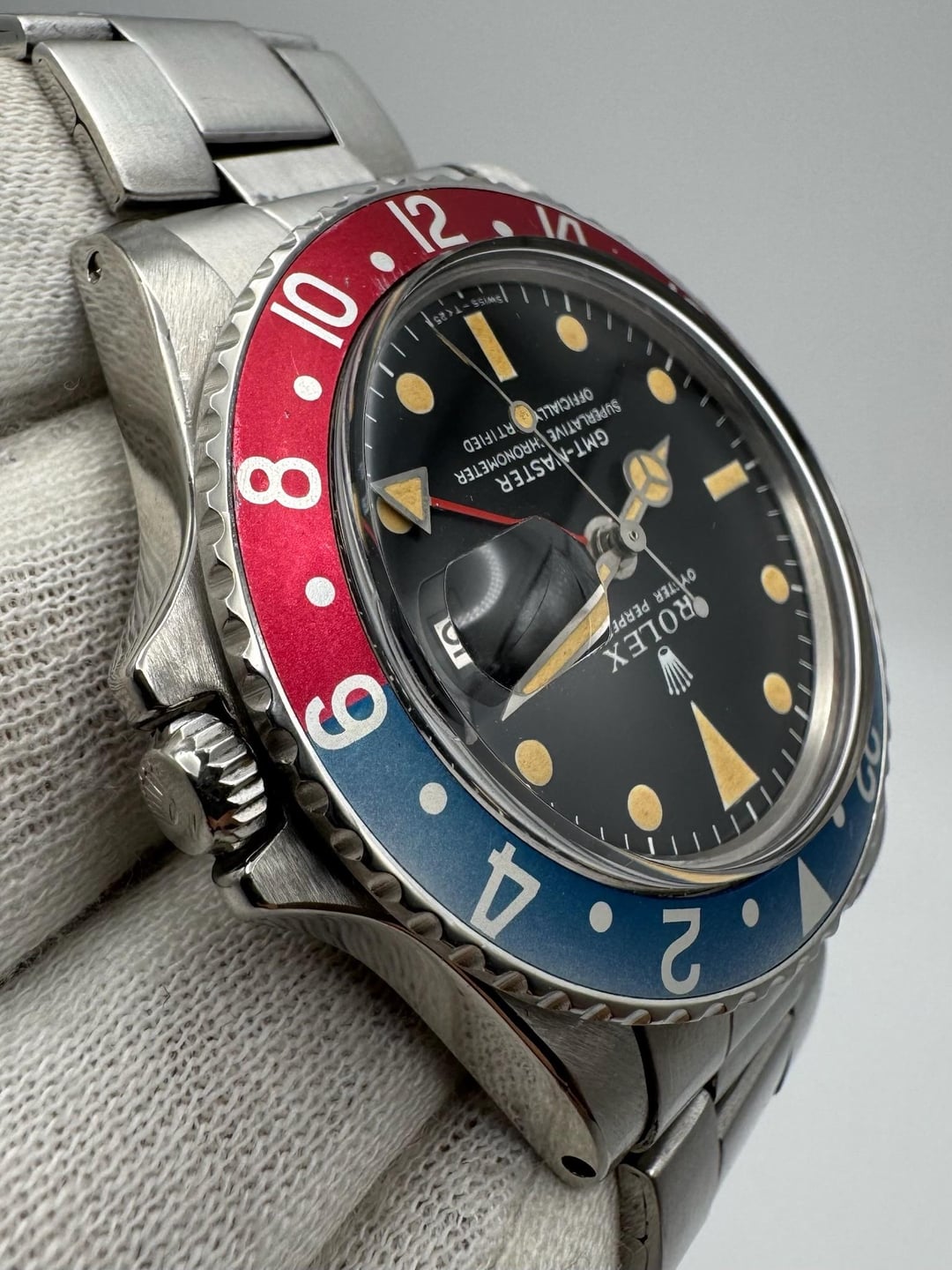 This all-original Rolex GMT-Master Ref. 1675 in stainless steel is preserved in outstanding condition, approaching like-new for its age. The case retains very thick, razor-sharp lugs with factory-like surfaces and well-defined bevels throughout, reflecting careful ownership and minimal wear. The watch features a highly desirable MK1 long E period-correct dial with pronounced zinc sulfide patina, evenly developed across the lume plots and perfectly matched by the original hands. Under UV light, the lume reacts with a bright green glow, consistent with correct materials from this era. The faded red and blue Pepsi bezel insert has aged beautifully, complementing the overall character of the watch without detracting from its originality. The original folded-link Oyster bracelet is exceptionally preserved, showing no stretch at all and retaining all 12 links, a rare attribute for a GMT-Master from the 1960s. The case serial number 1.8 million dates production to approximately 1967. The movement has been professionally serviced in December 2025, is running properly, and has been pressure tested to 3ATM. An outstanding example of a reference that remains one of the most important and collectible vintage sports models Rolex has ever produced. **Reference:** 1675 **Size:** 40mm **Year:** 1967 📜 Includes: Custom [travel pouch](https://bogossia.com/products/travel-carrying-case) ($50+ value) 💵 Price: $15,150 + FREE overnight shipping with FedEx fully insured. [Timestamp](https://imgur.com/a/yXyWNjx) 🔗 Other Listings: [profile](https://www.reddit.com/u/BoghossianJewelry/s/vm81HAdB7o) | [watchrecon](https://www.watchrecon.com/?query=BoghossianJewelry&last_days=0) 🔥 Follow us on [Instagram](https://www.instagram.com/bogossiajewelers) 📍 Location: New York ✉️ Email: [email protected] 🔒 Authenticity: 100% guaranteed, buy with confidence. We have 160+ reviews on Chrono24 with 180+ transactions, and Excellent rating score on Trustpilot. Visit our [profile](https://www.reddit.com/u/BoghossianJewelry/s/vm81HAdB7o) for links and references. View [reddit feedback](https://watchcharts.com/repcheck/reddit/BoghossianJewelry/feedback) and [reddit transactions](https://www.reddit.com/r/watchexchange/wiki/confirmations/boghossianjewelry). 📦 Domestic Shipping: Ships with FedEx overnight, within 24 business hours of payment, from New York, NY to CONUS. The shipment is fully insured against damage, loss or theft. 🌍 International Shipping: Incurs an additional $100. 💳 Payment: Crypto (+2%), PayPal/CC (+4%), Web, or Face-to-face deal in NY. 🔐 [Seller References](https://bogossia.com/authenticity) 📸 [IG: @bogossiajewelers](https://www.instagram.com/bogossiajewelers)