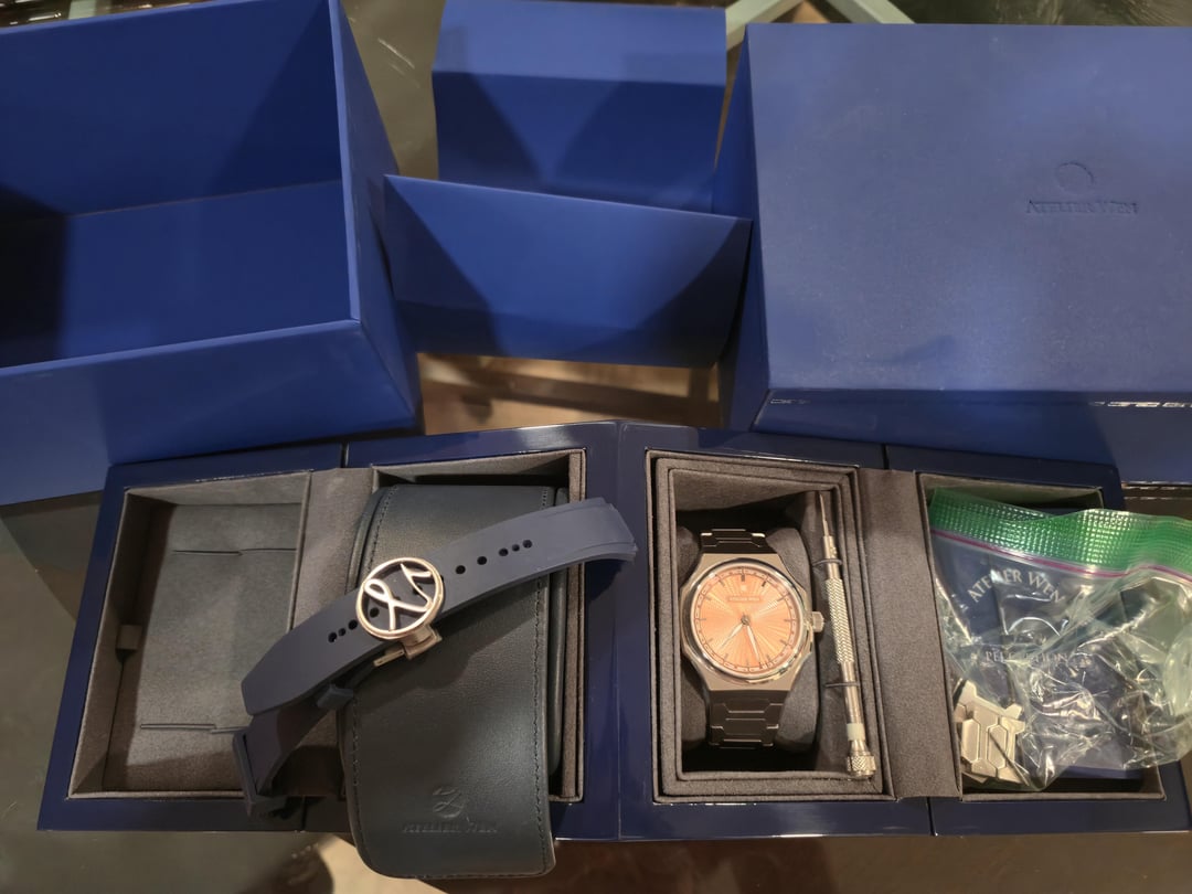 ![Thumbnail [WTS] Priced to sell! - Atelier Wen Perception Salmon Dial w/ Blue OEM rubber strap, Full Kit + 5 yr Warranty (purchased 7/2023), Excellent Condition - $2750 8](https://cdn-cf.watchpatrol.net/120x120/img/full/f05ea22adf844cc6821559266f2bee7d2ef62b68.jpg)